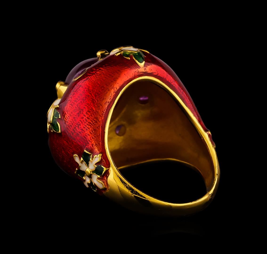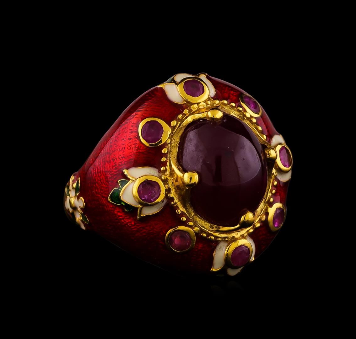 One of a kind high fashion sterling silver Ring weighing 14.5 grams. Containing: Ruby, Multi-color Enamel Inlay. This sterling silver promises a lasting shine.