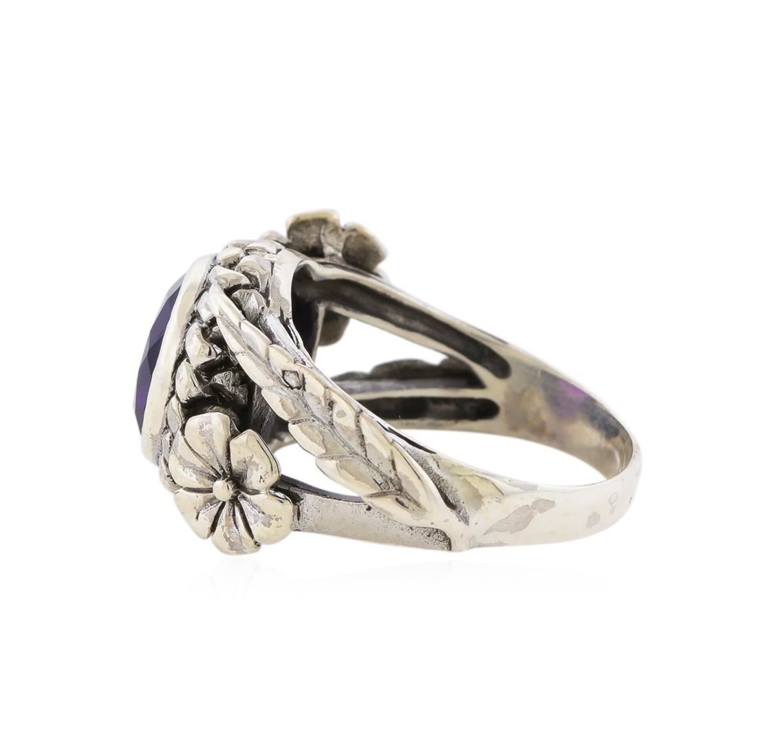 One of a kind high fashion sterling silver Ring weighing 6.8 grams. Containing: Amethyst. This sterling silver promises a lasting shine.