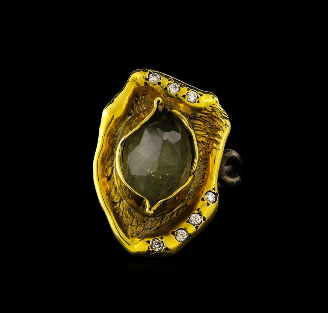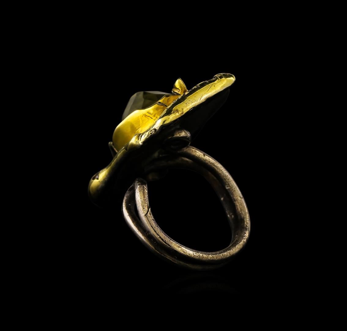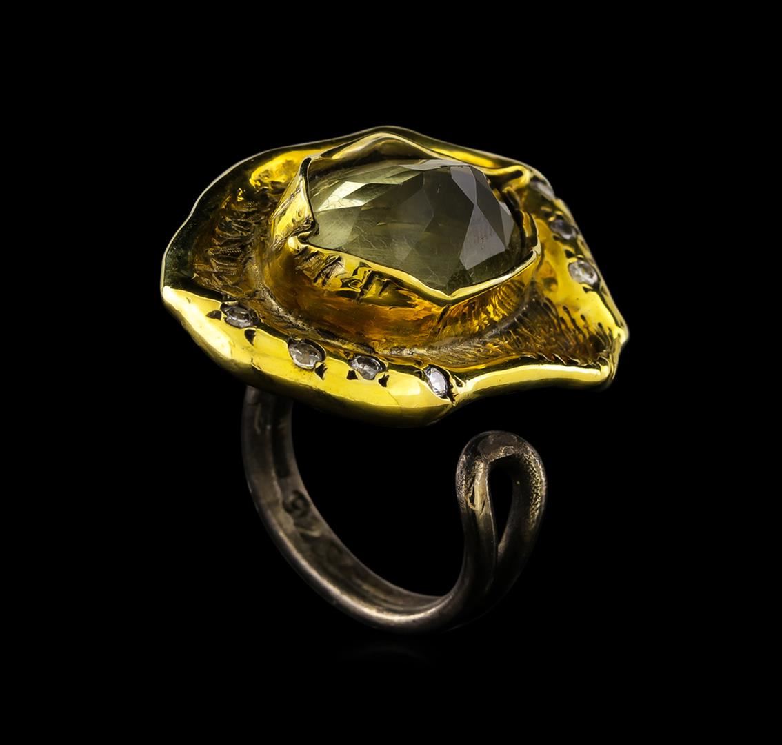 One of a kind high fashion sterling silver Ring weighing 12.3 grams. Black Antique texture. Containing: Lemon Quartz, White Crystal. This sterling silver promises a lasting shine.