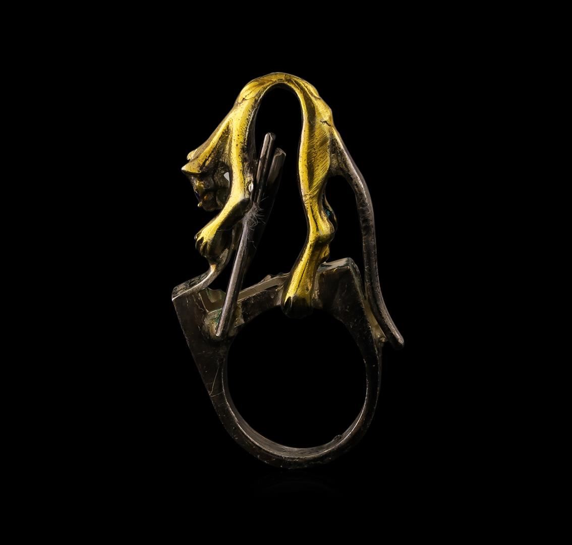 One of a kind high fashion sterling silver Ring weighing 11.8 grams. Containing: White Crystal, Blue Crystal. This sterling silver promises a lasting shine.