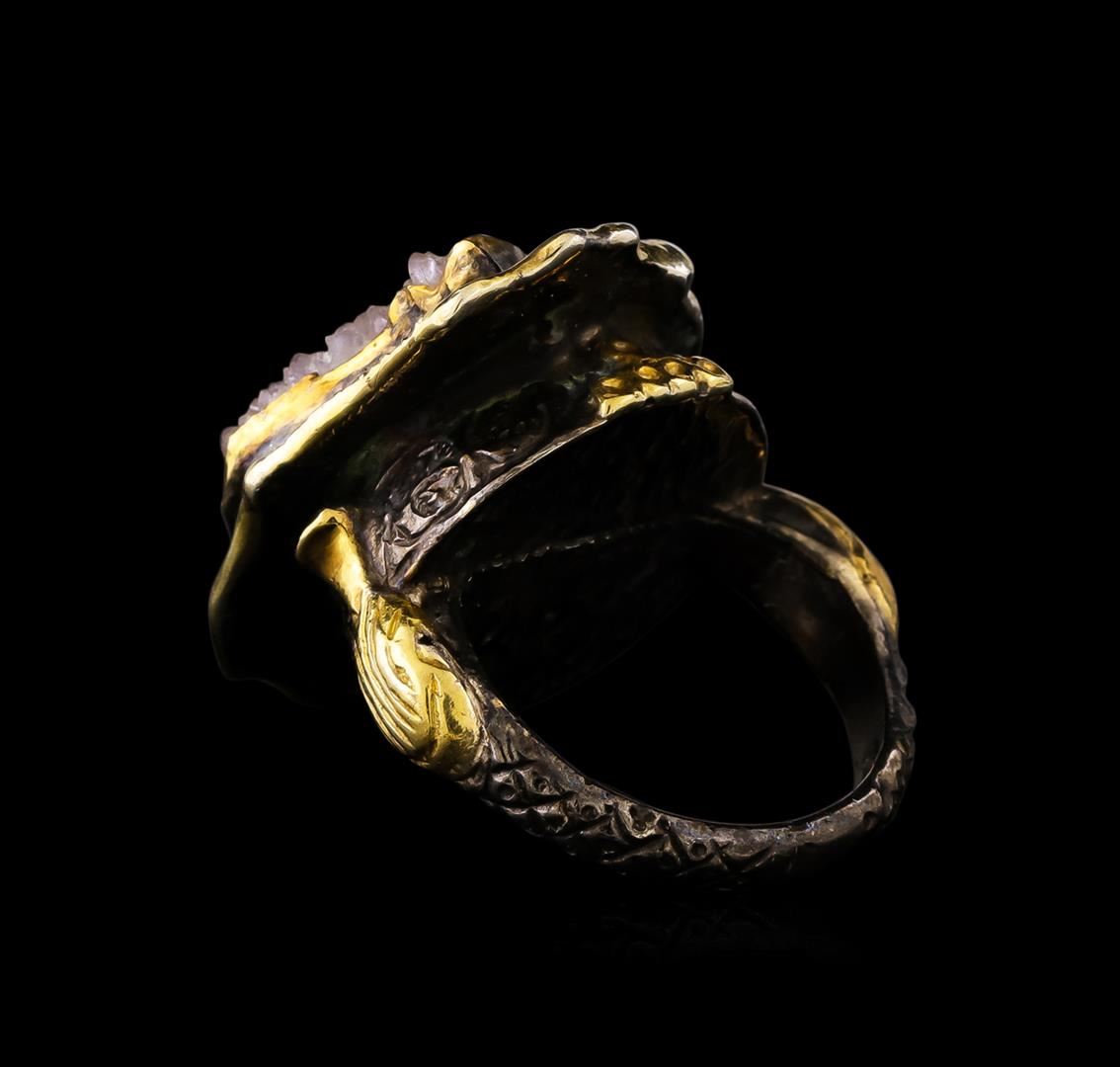 One of a kind high fashion sterling silver Ring weighing 25.1 grams. Black Antique texture. Containing: Crystal Agate, White Crystal. This sterling silver promises a lasting shine.
