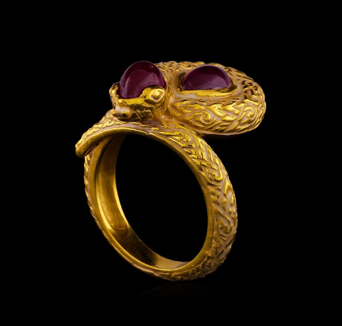 One of a kind high fashion sterling silver Ring weighing 9.7 grams. Containing: Ruby, White Enamel Inlay. This sterling silver promises a lasting shine.