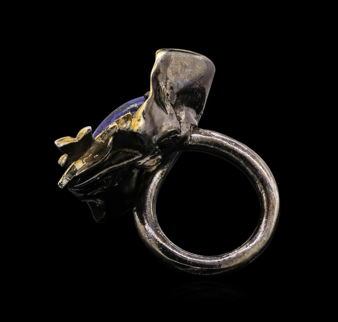 One of a kind high fashion sterling silver Ring weighing 24.3 grams. Black Antique texture. Containing: Lapis, Citrine Quartz, Black Crystal. This sterling silver promises a lasting shine.