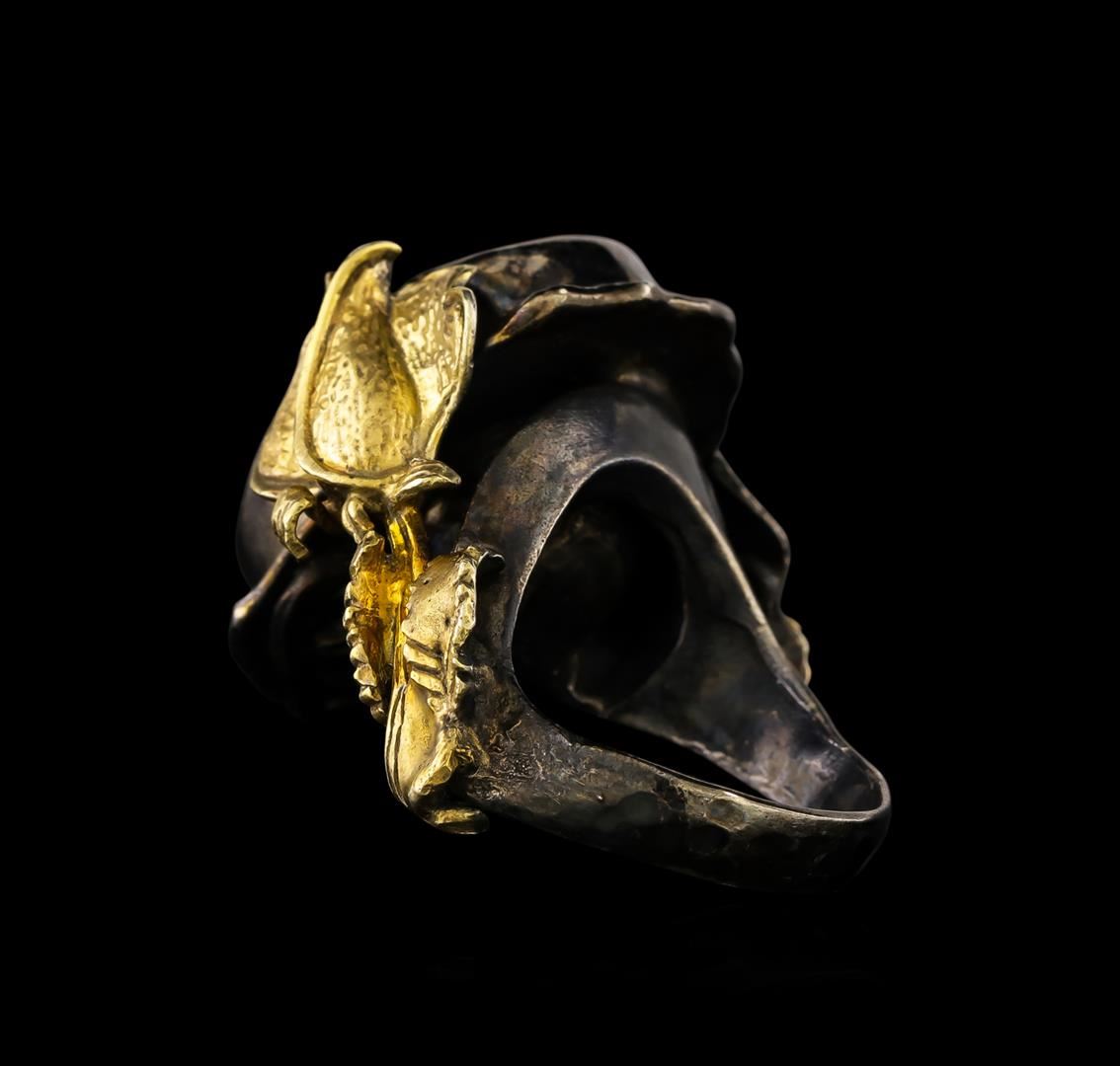 One of a kind high fashion sterling silver Ring weighing 23 grams. Black Antique texture. Containing: Turquoise. This sterling silver promises a lasting shine.