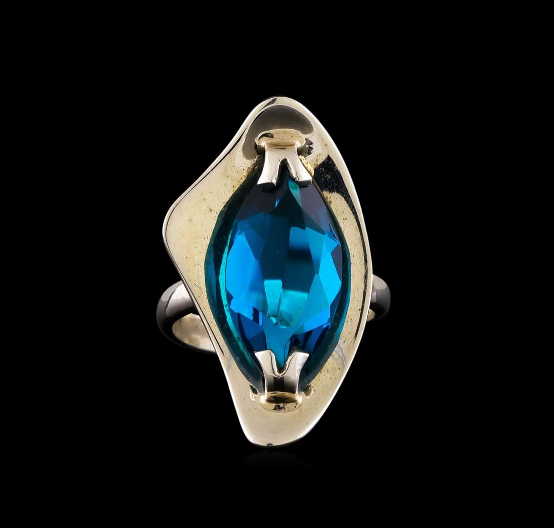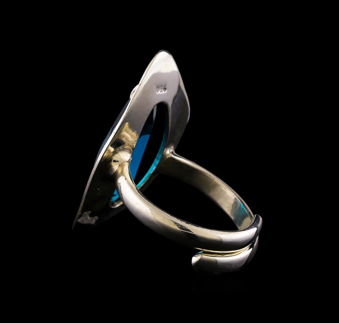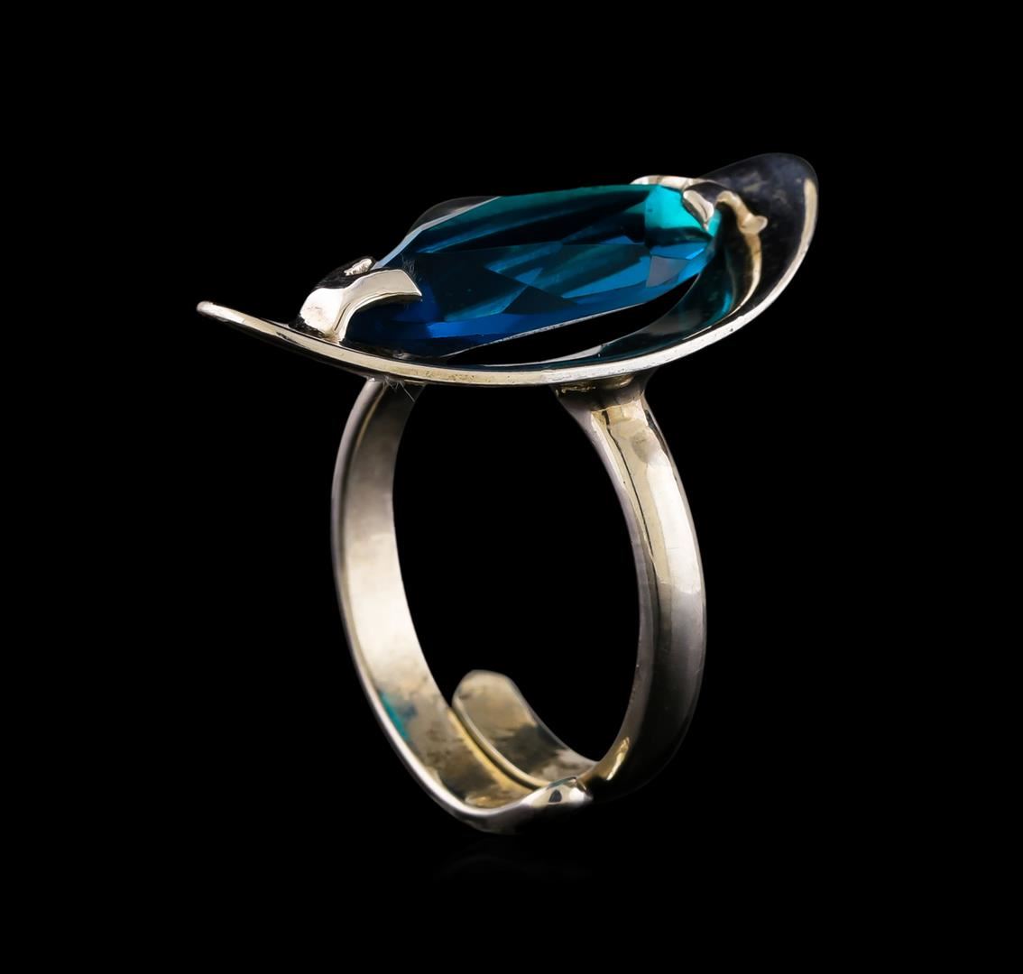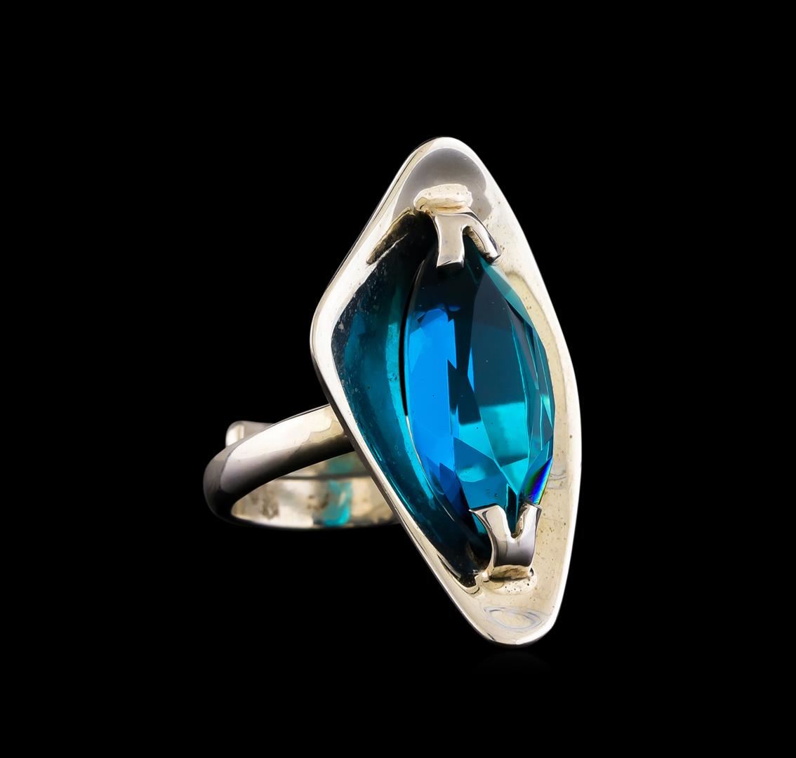 One of a kind high fashion sterling silver Ring weighing 7.5 grams. Containing: Cyan Crystal. This sterling silver promises a lasting shine.