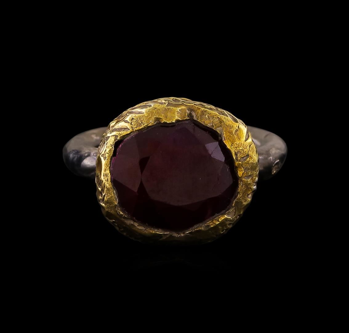 One of a kind high fashion sterling silver Ring weighing 15 grams. Black Antique texture. Containing: Ruby. This sterling silver promises a lasting shine.