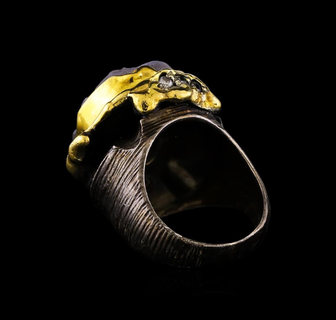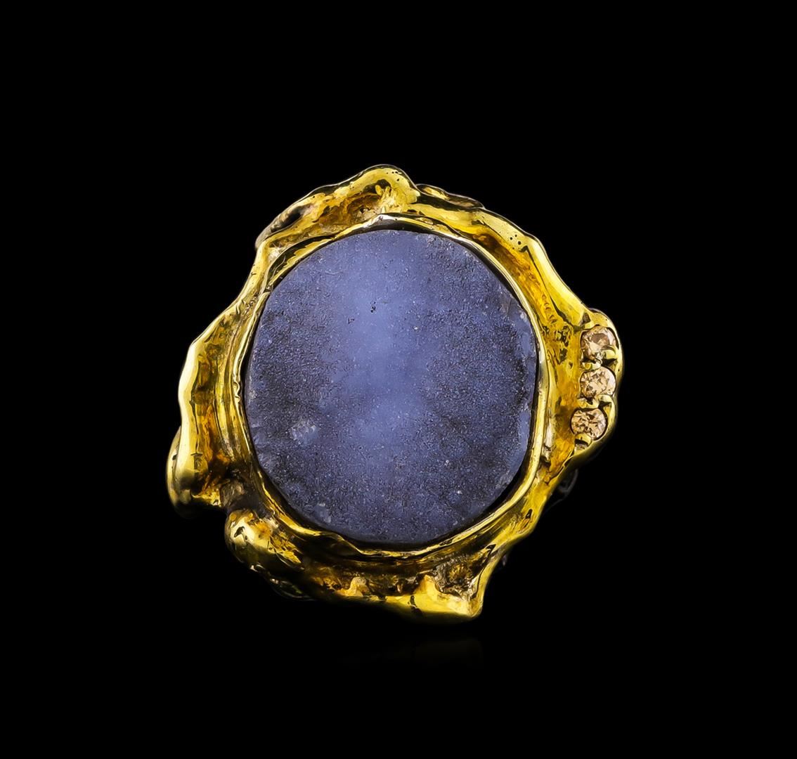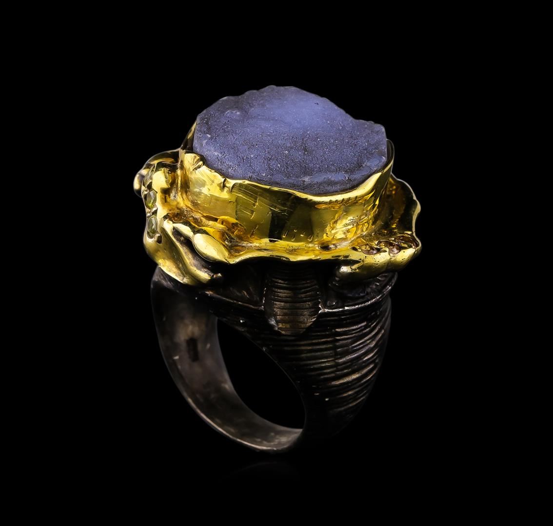 One of a kind high fashion sterling silver Ring weighing 19.2 grams. Black Antique texture. Containing: Crystal Blue Lace Agate, Yellow Crystal, Peach Crystal. This sterling silver promises a lasting shine.