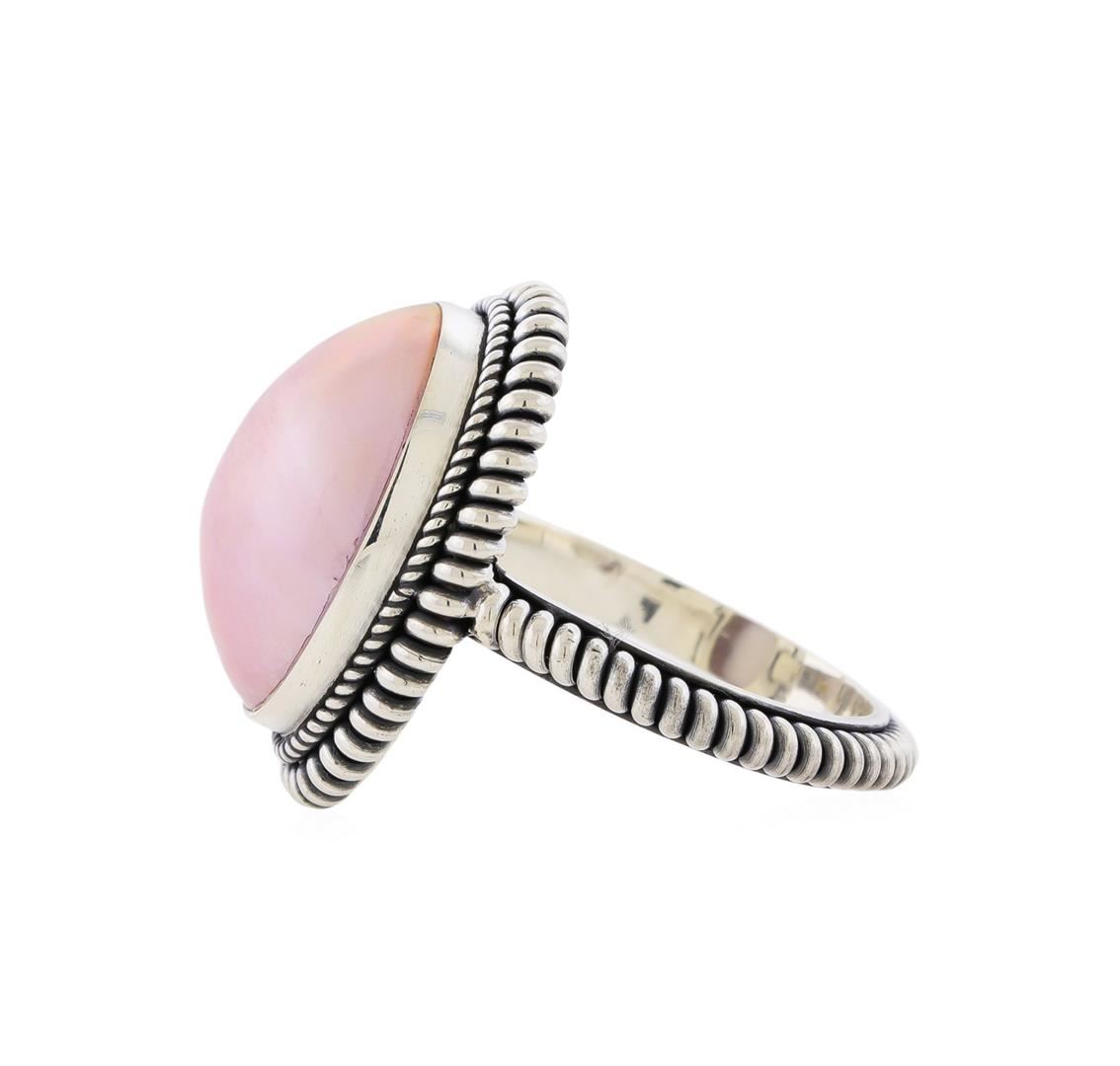 One of a kind high fashion sterling silver Ring weighing 4.8 grams. Containing: Dyed Pink Mabe Pearl. This sterling silver promises a lasting shine.