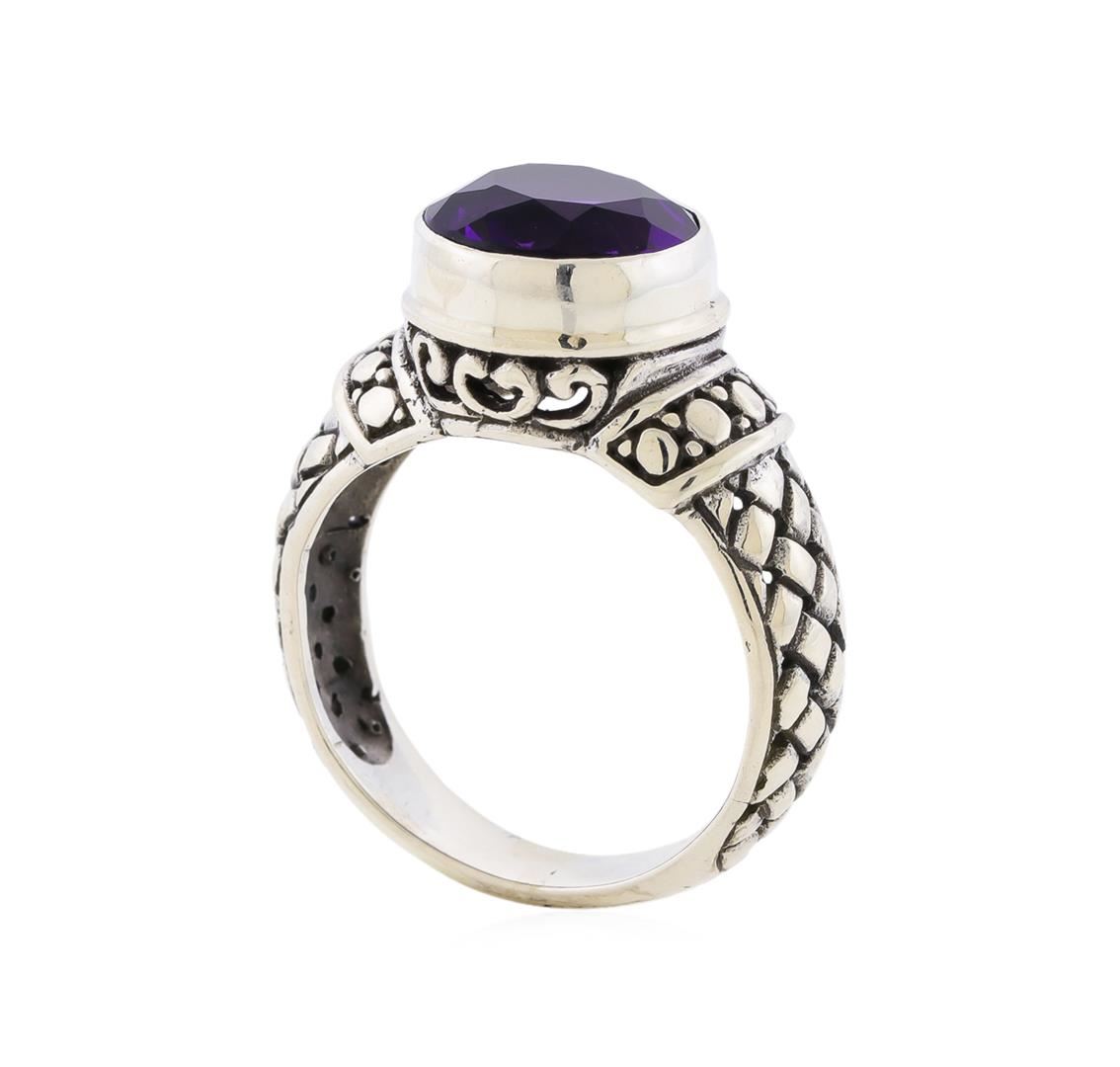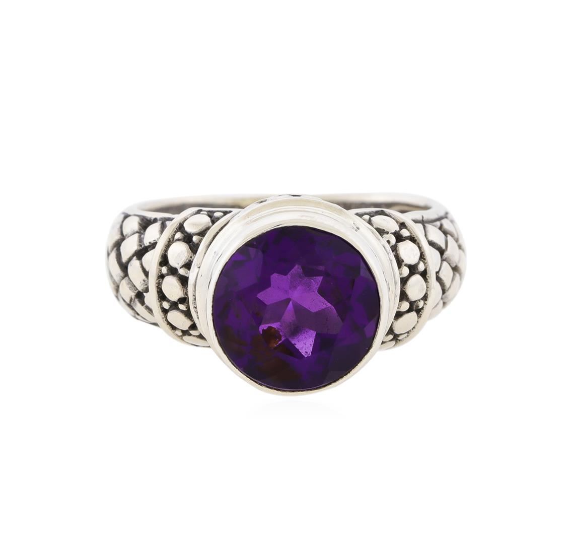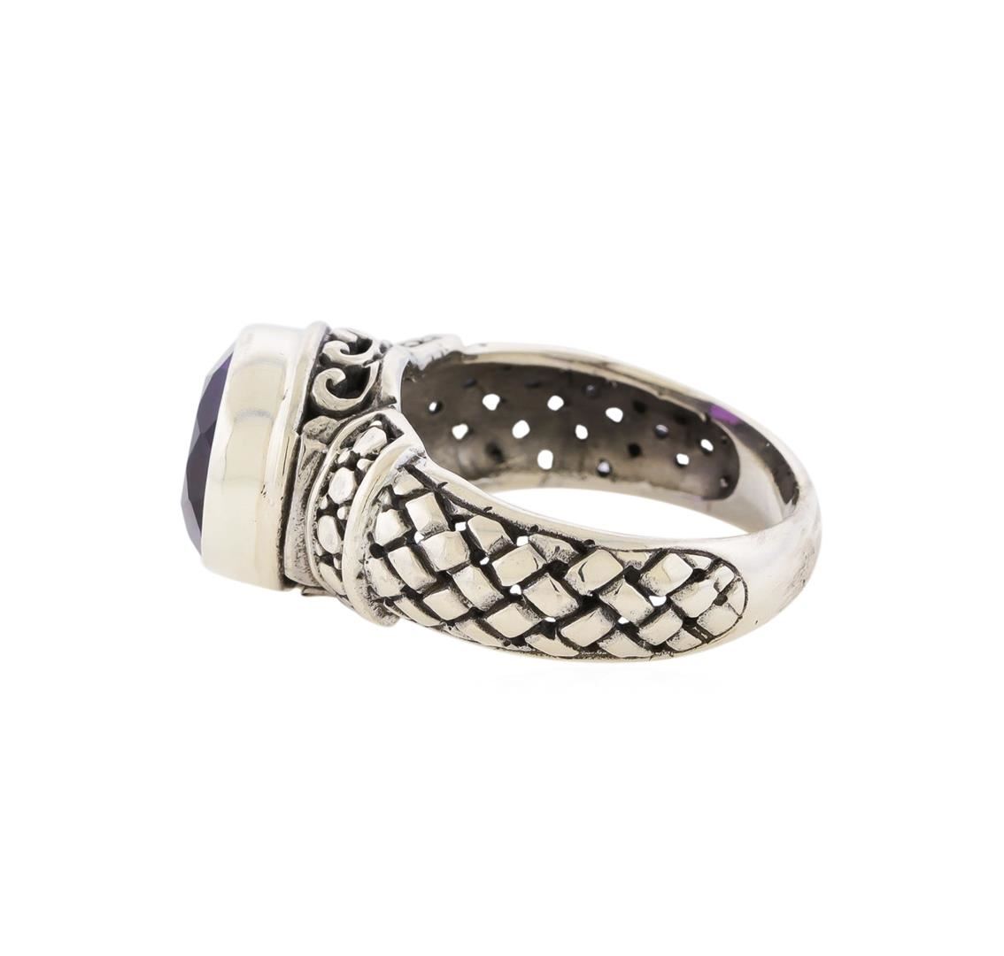 One of a kind high fashion sterling silver Ring weighing 6.2 grams. Containing: Amethyst. This sterling silver promises a lasting shine.