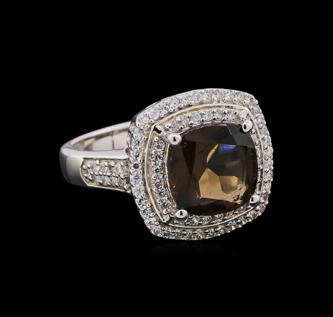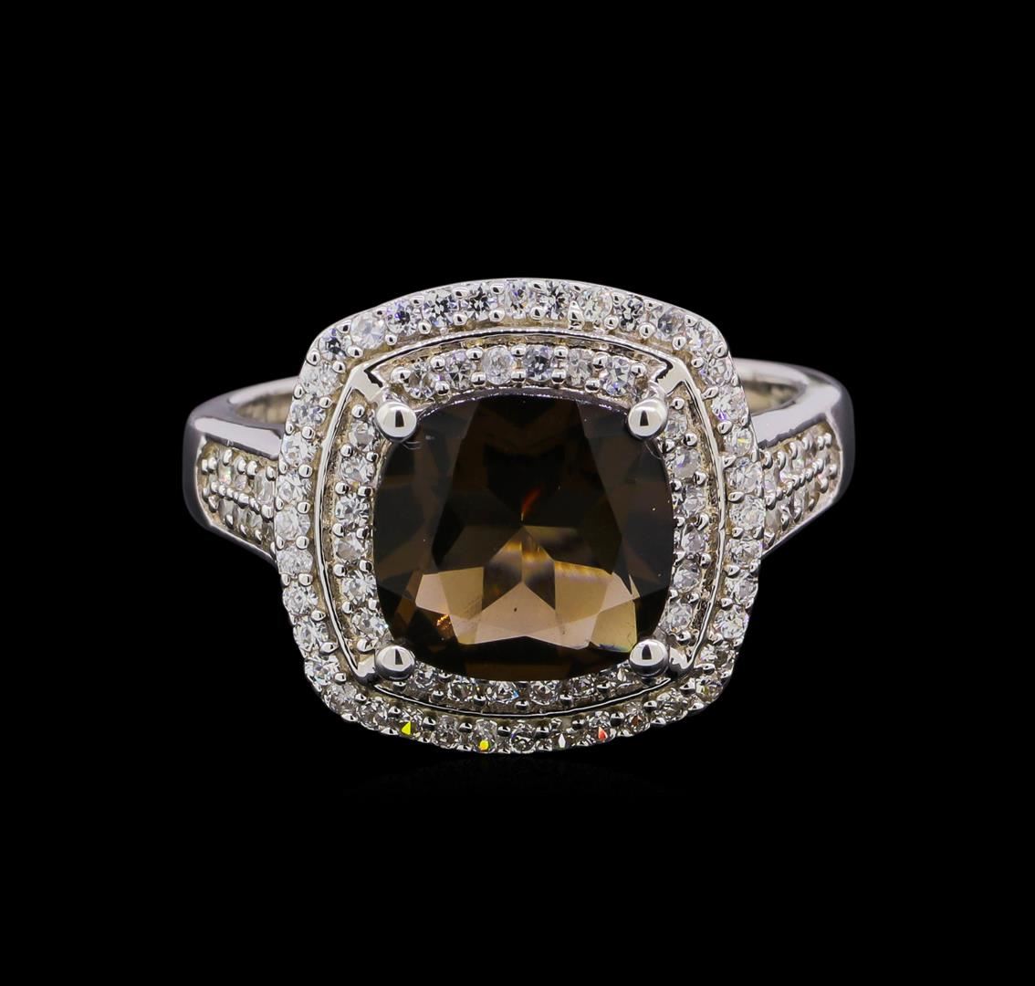 One of a kind high fashion sterling silver Ring weighing 7.5 grams. Containing: Smoky Quartz, Cubic Zirconia. This sterling silver promises a lasting shine.