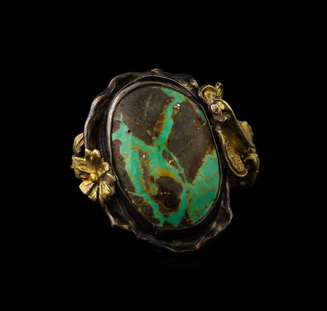 One of a kind high fashion sterling silver Ring weighing 23 grams. Black Antique texture. Containing: Turquoise. This sterling silver promises a lasting shine.