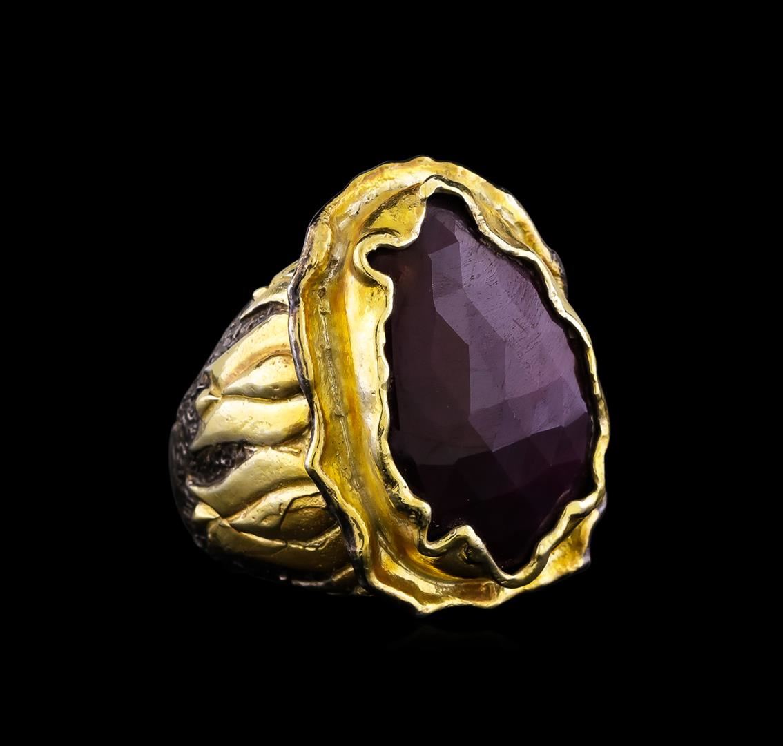 One of a kind high fashion sterling silver Ring weighing 29.1 grams. Black Antique texture. Containing: Ruby. This sterling silver promises a lasting shine.