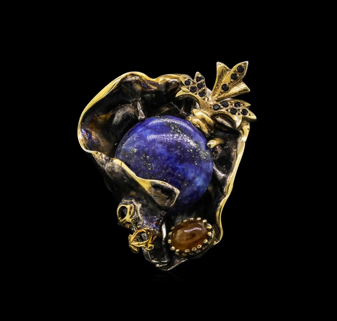 One of a kind high fashion sterling silver Ring weighing 24.3 grams. Black Antique texture. Containing: Lapis, Citrine Quartz, Black Crystal. This sterling silver promises a lasting shine.