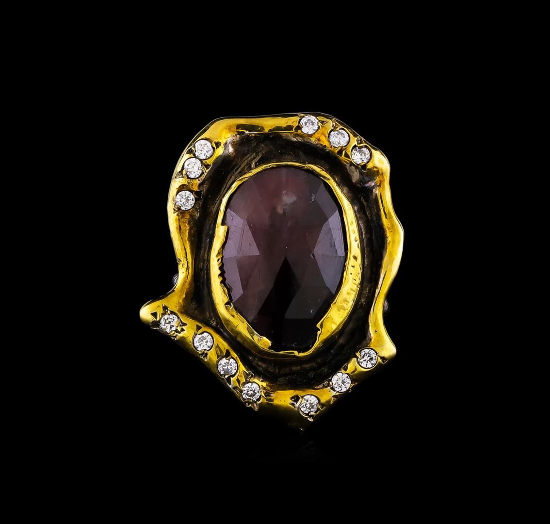 One of a kind high fashion sterling silver Ring weighing 17.7 grams. Black Antique texture. Containing: Ruby, White Crystal. This sterling silver promises a lasting shine.