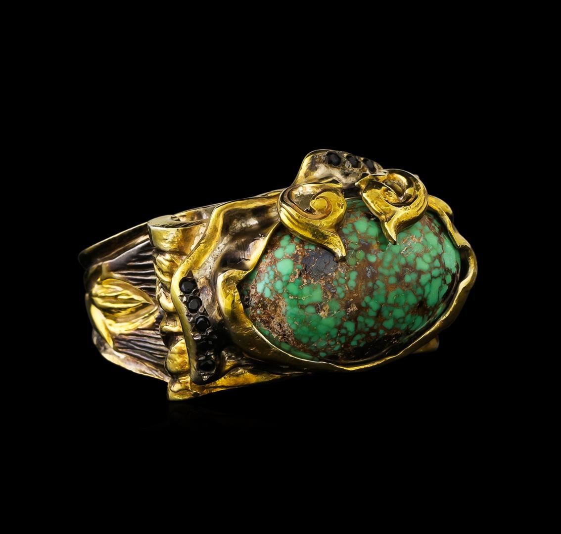 One of a kind high fashion sterling silver Ring weighing 26.3 grams. Black Antique texture. Containing: Turquoise, Black Crystal. This sterling silver promises a lasting shine.