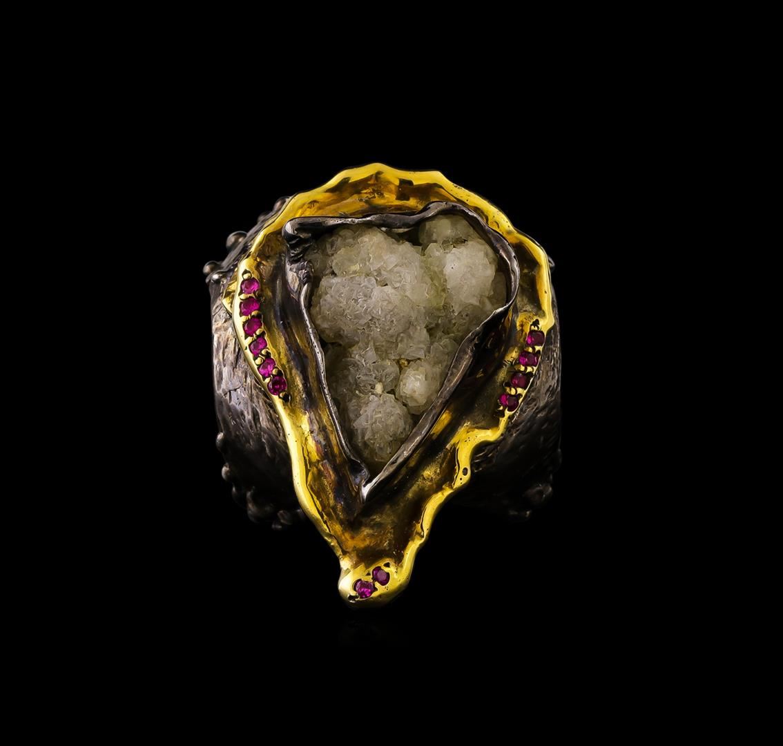 One of a kind high fashion sterling silver Ring weighing 30.8 grams. Black Antique texture. Containing: Crystal Agate, Red Crystal. This sterling silver promises a lasting shine.