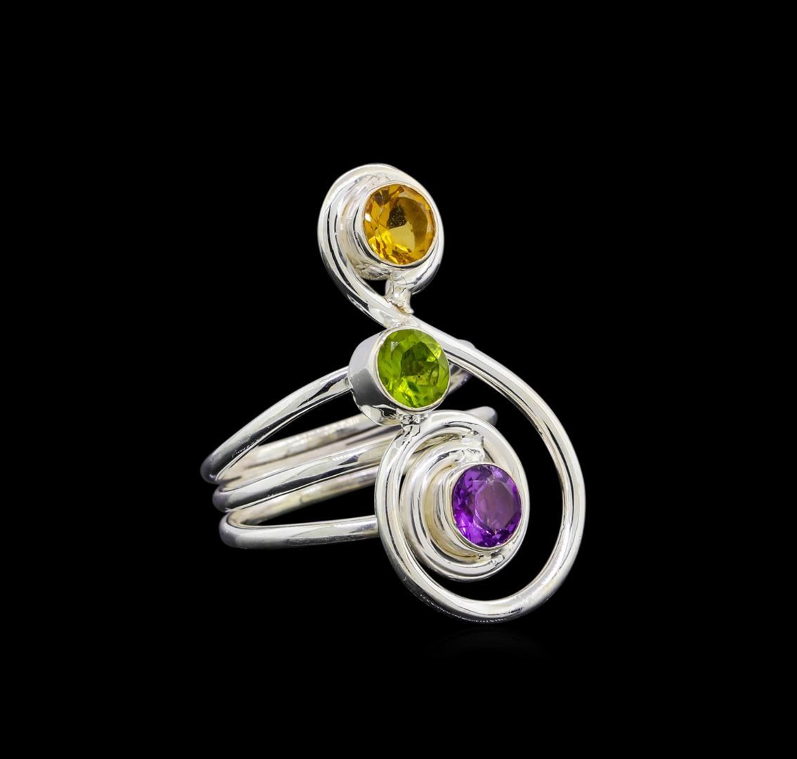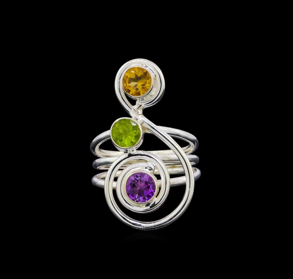 One of a kind high fashion sterling silver Ring weighing 10.1 grams. Containing: Citrine, Amethyst, Peridot. This sterling silver promises a lasting shine.