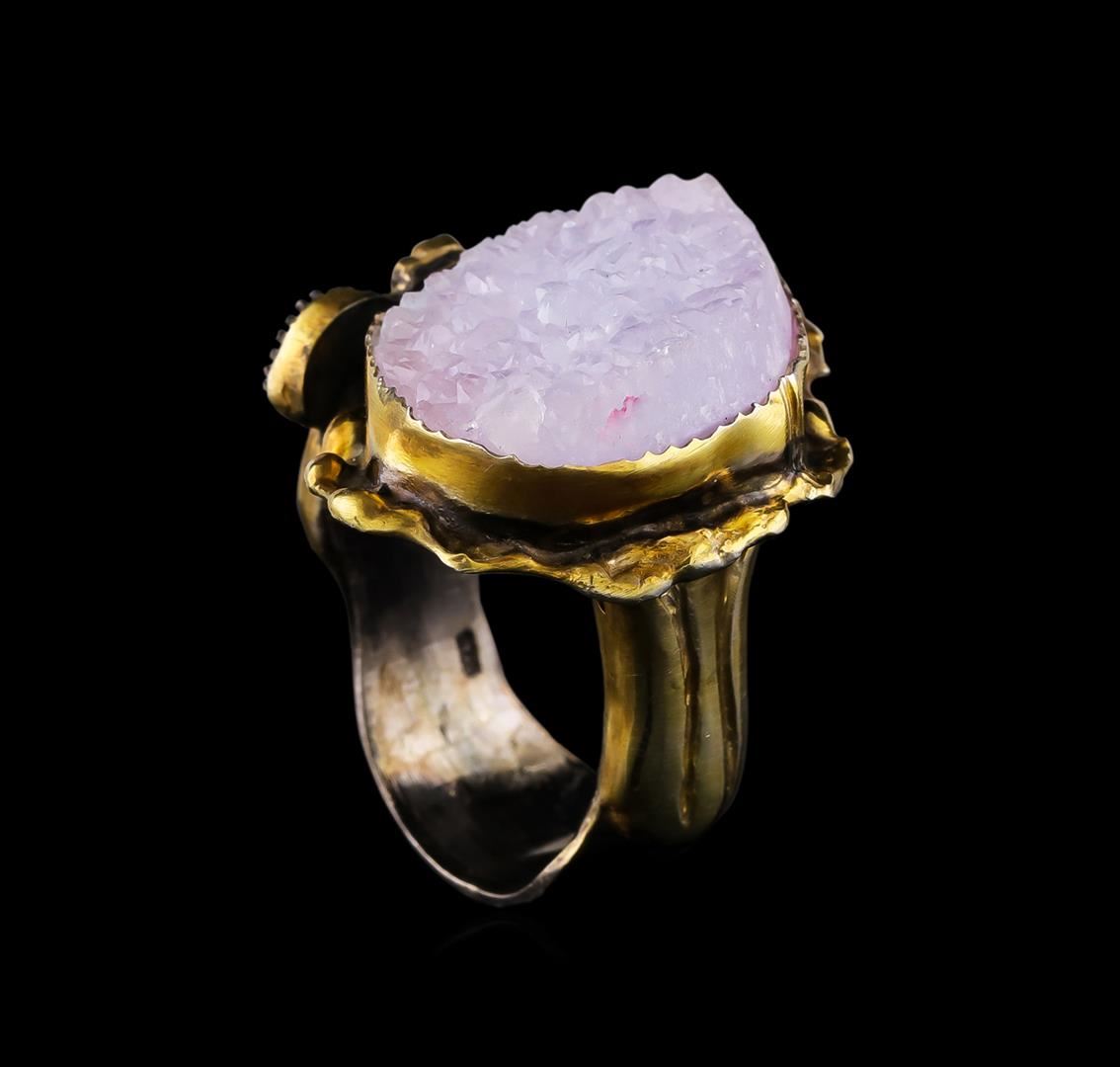 One of a kind high fashion sterling silver Ring weighing 18.2 grams. Black Antique texture. Containing: Crystal White Agate, Green Crystal. This sterling silver promises a lasting shine.