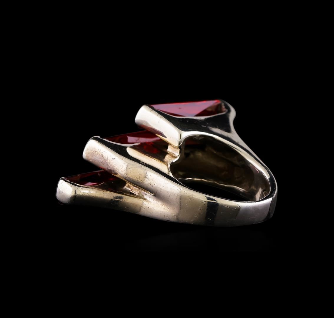 One of a kind high fashion sterling silver Ring weighing 24.7 grams. Containing: Reddish Orange Glass. This sterling silver promises a lasting shine.