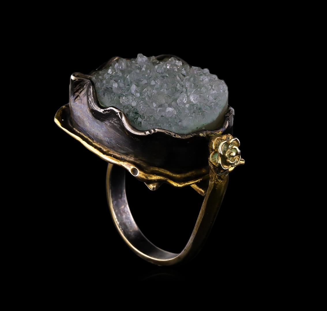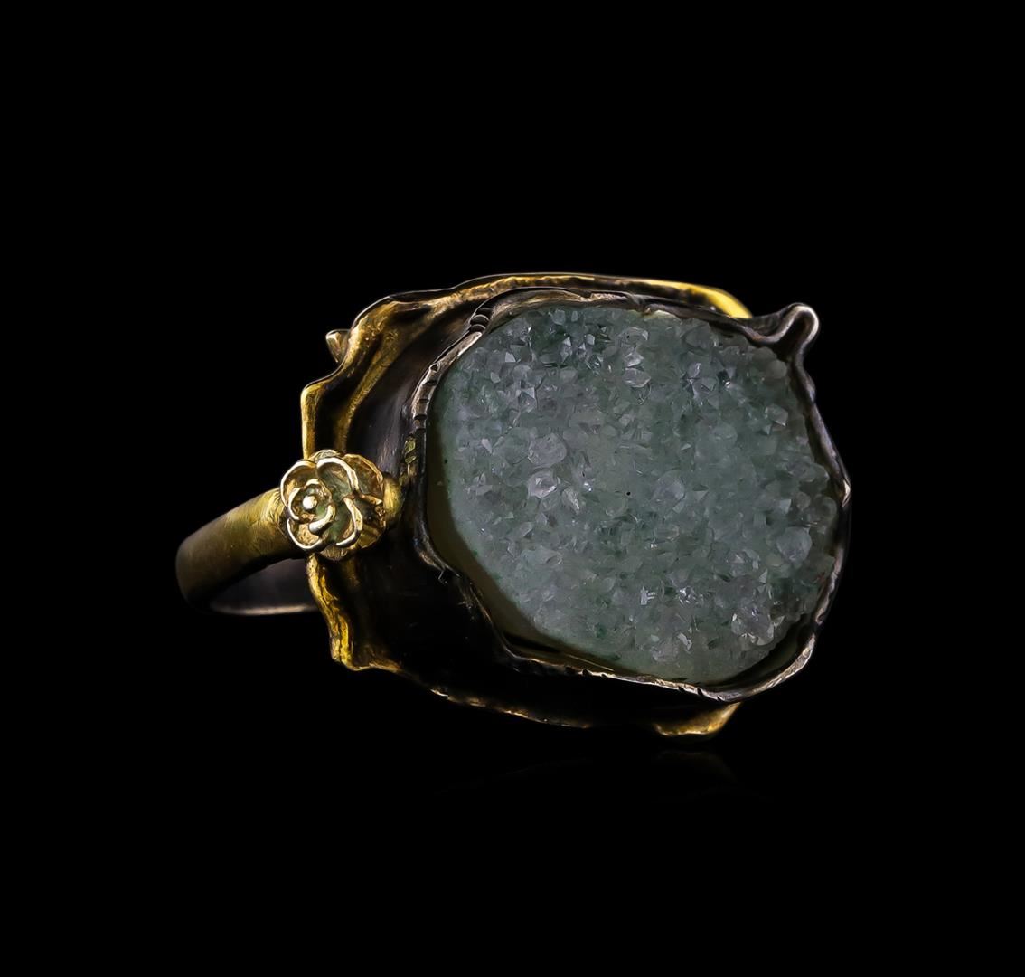 One of a kind high fashion sterling silver Ring weighing 18.4 grams. Black Antique texture. Containing: Crystal Greenish Blue Agate. This sterling silver promises a lasting shine.