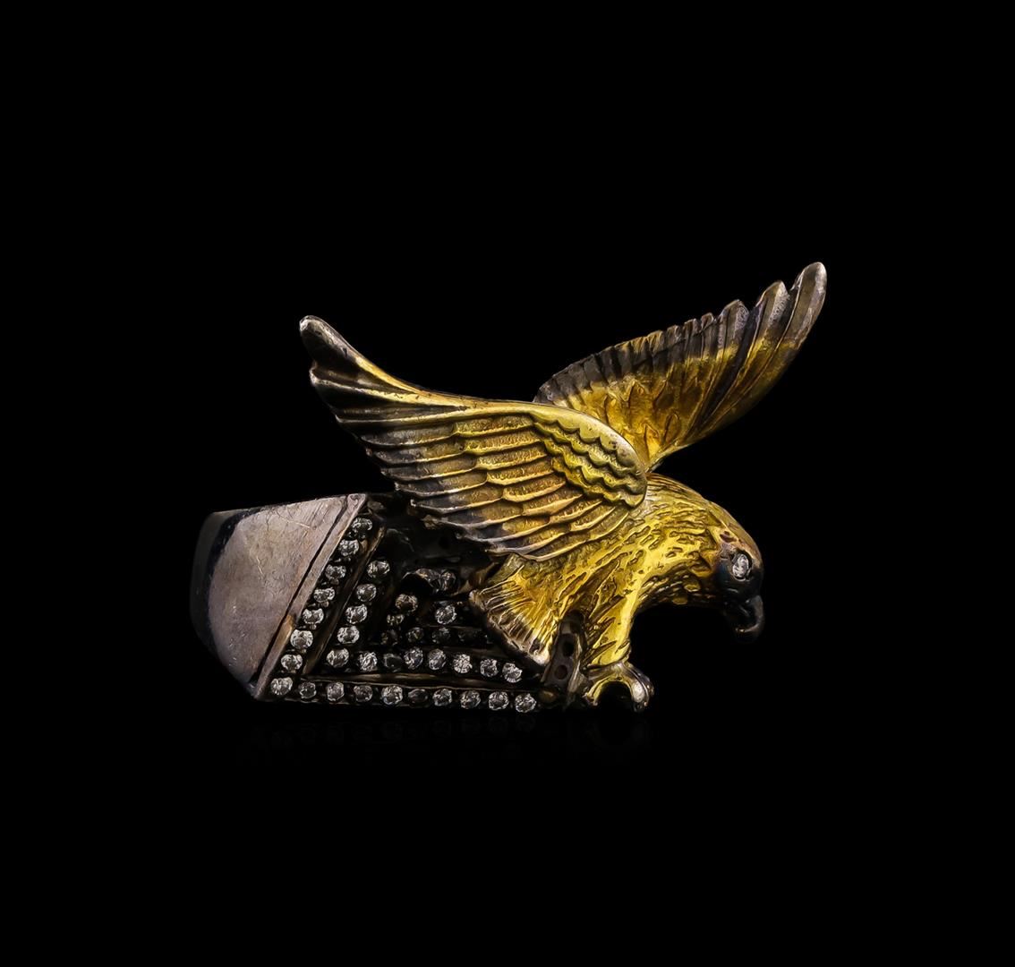 One of a kind high fashion sterling silver Ring weighing 10.9 grams. Containing: White Crystal. This sterling silver promises a lasting shine.