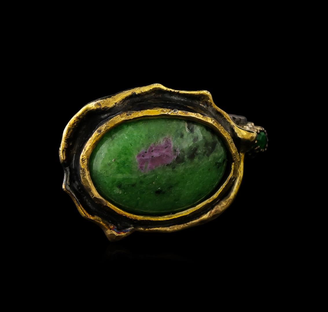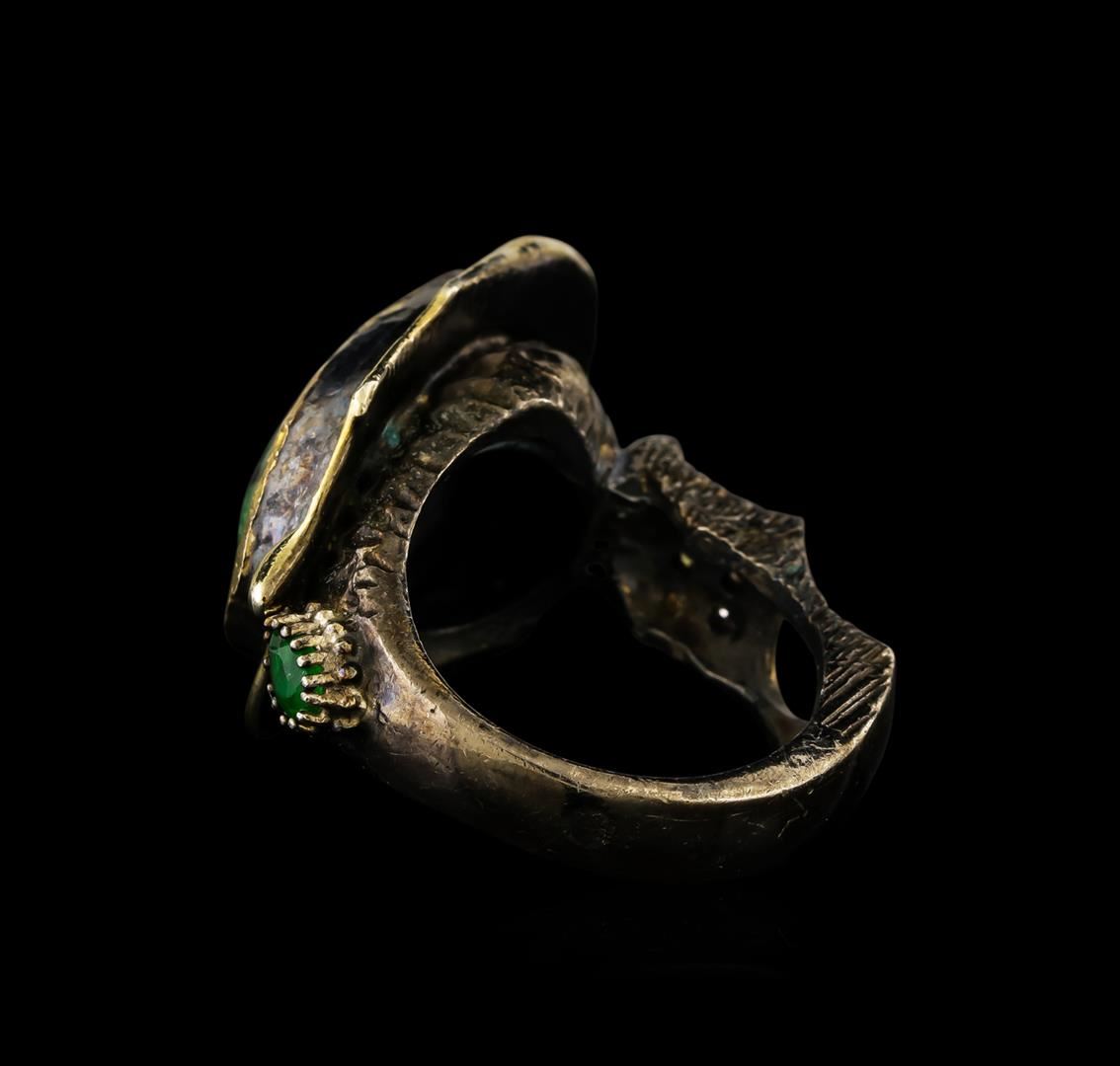 One of a kind high fashion sterling silver Ring weighing 22 grams. Black Antique texture. Containing: Created Green Agate, Green Crystal, White Crystal. This sterling silver promises a lasting shine.