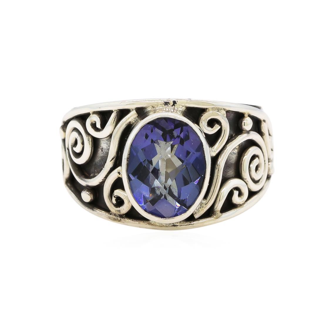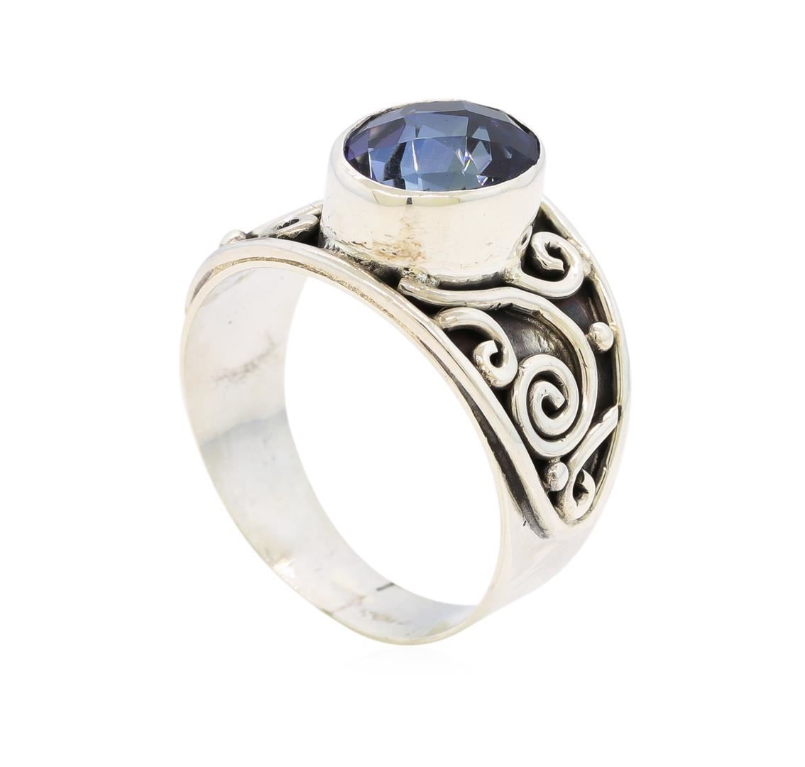 One of a kind high fashion sterling silver Ring weighing 4.5 grams. Containing: Blue Crystal. This sterling silver promises a lasting shine.