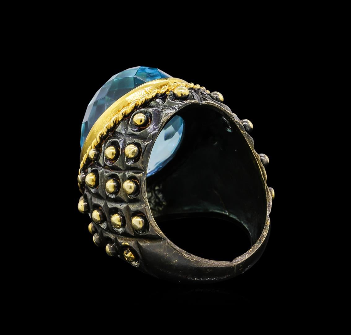 One of a kind high fashion sterling silver Ring weighing 16.6 grams. Black Antique texture. Containing: Blue Crystal. This sterling silver promises a lasting shine.