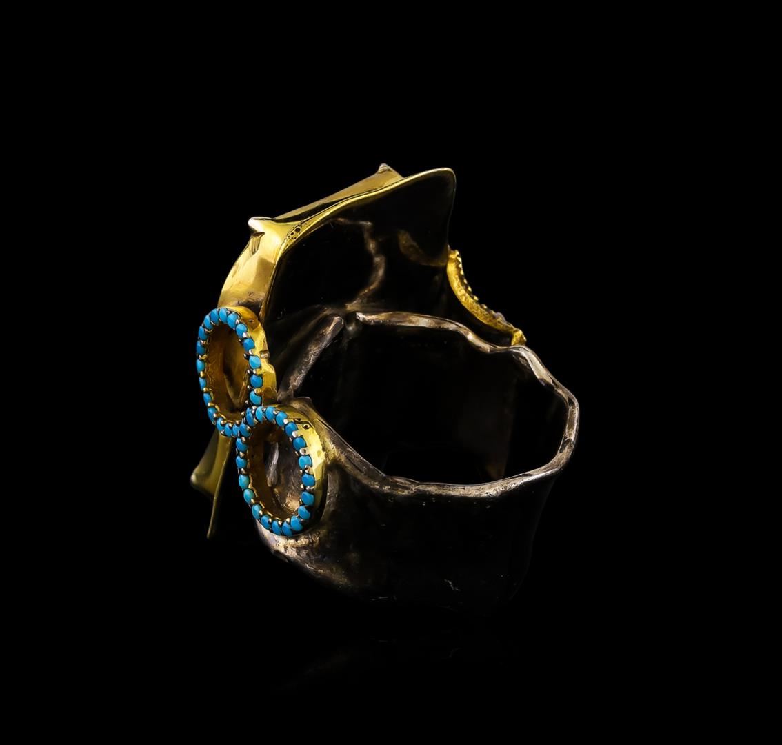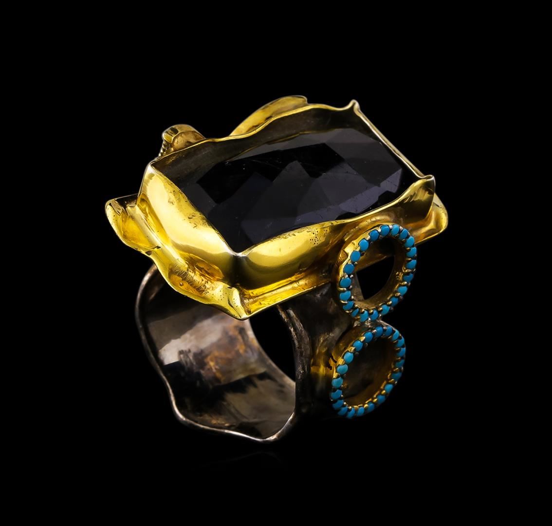 One of a kind high fashion sterling silver Ring weighing 17.7 grams. Containing: Blue Crystal, Created Turquoise, Brown Crystal, White Crystal, Green Crystal. This sterling silver promises a lasting shine.