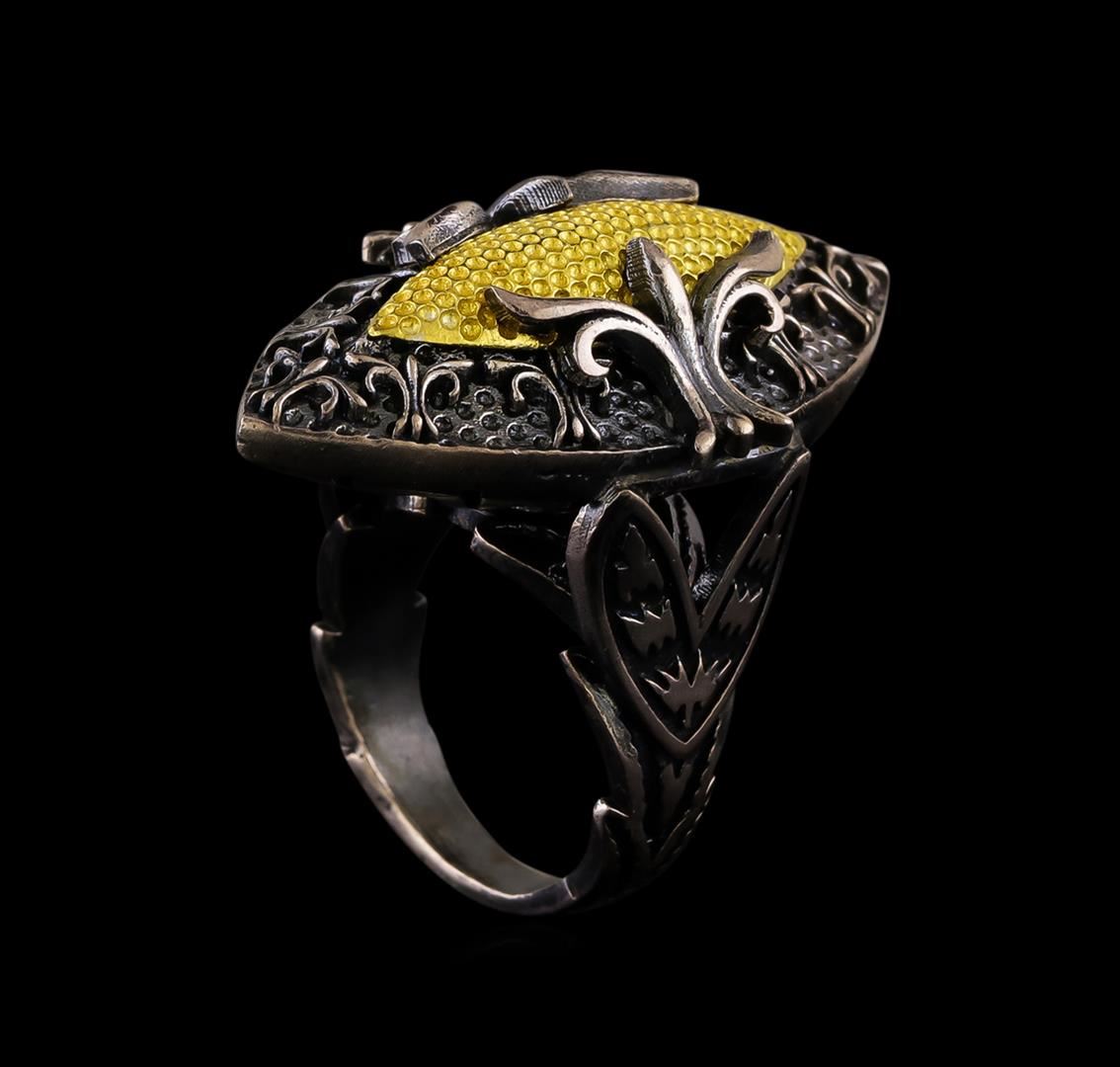 One of a kind high fashion sterling silver Ring weighing 17.2 grams. This sterling silver promises a lasting shine.