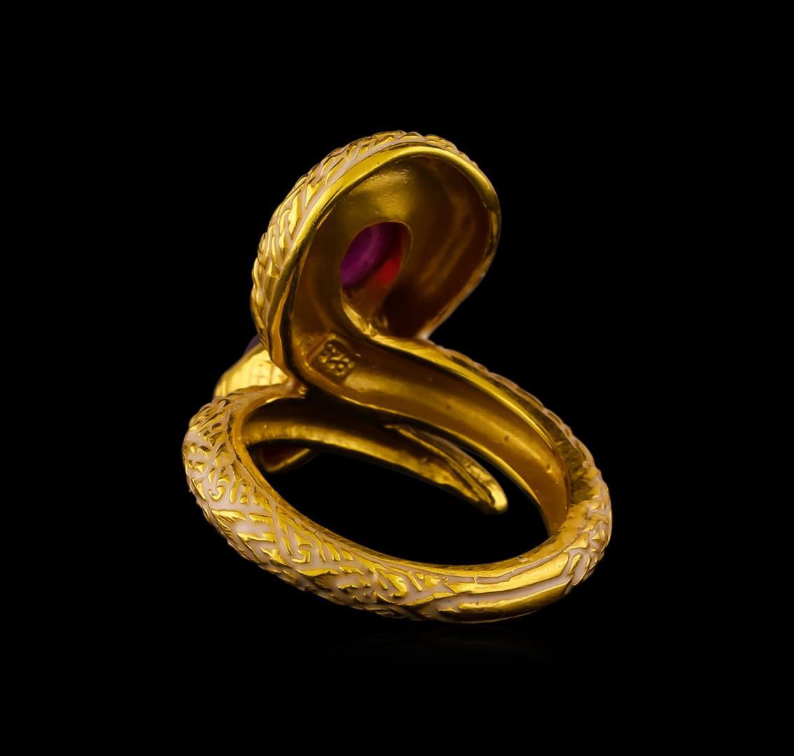 One of a kind high fashion sterling silver Ring weighing 9.7 grams. Containing: Ruby, White Enamel Inlay. This sterling silver promises a lasting shine.