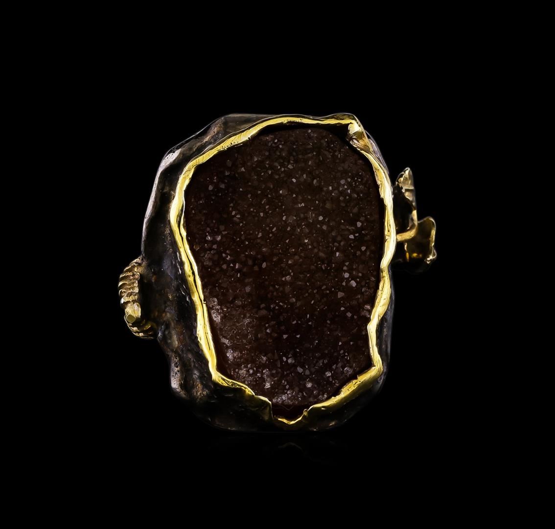 One of a kind high fashion sterling silver Ring weighing 20.1 grams. Black Antique texture. Containing: Crystal Brown Agate. This sterling silver promises a lasting shine.