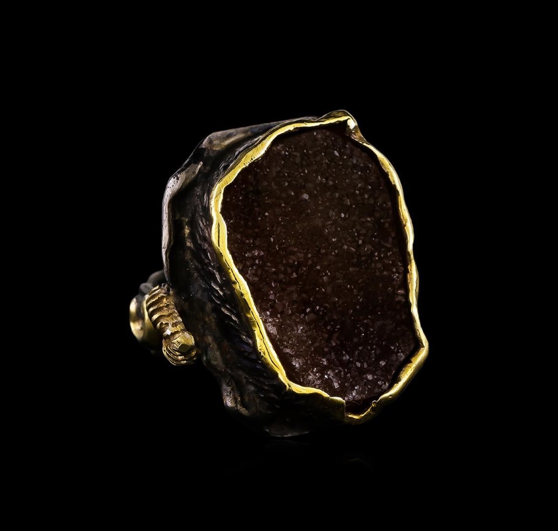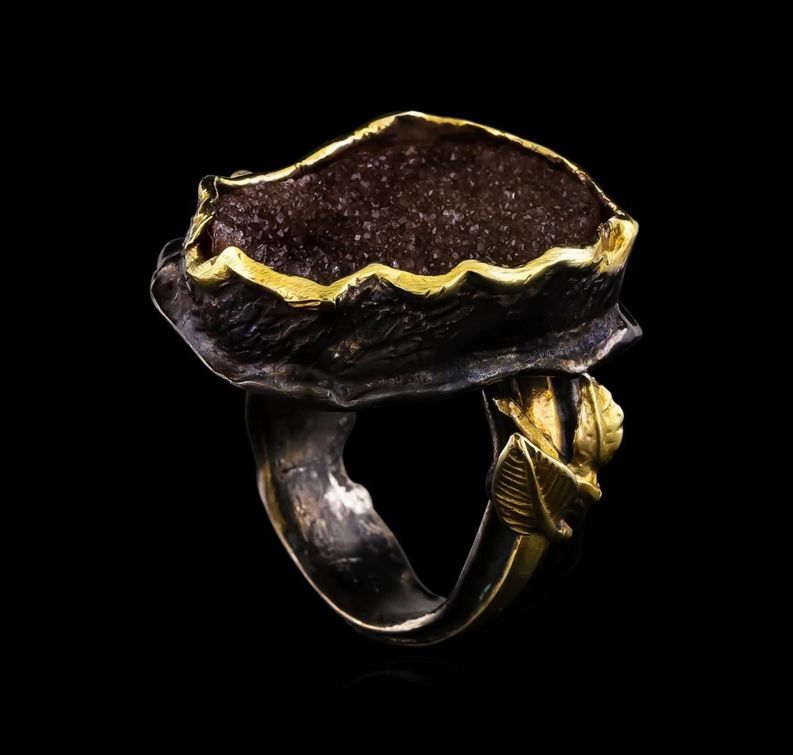 One of a kind high fashion sterling silver Ring weighing 20.1 grams. Black Antique texture. Containing: Crystal Brown Agate. This sterling silver promises a lasting shine.