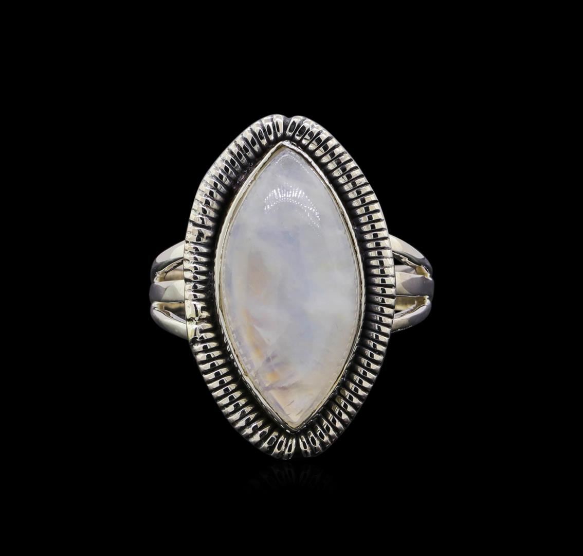 One of a kind high fashion sterling silver Ring weighing 8 grams. Containing: Moonstone. This sterling silver promises a lasting shine.