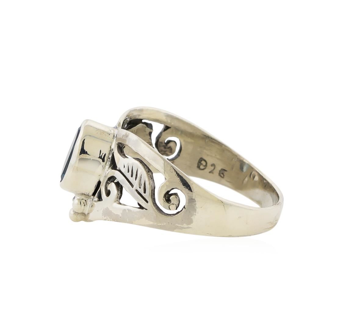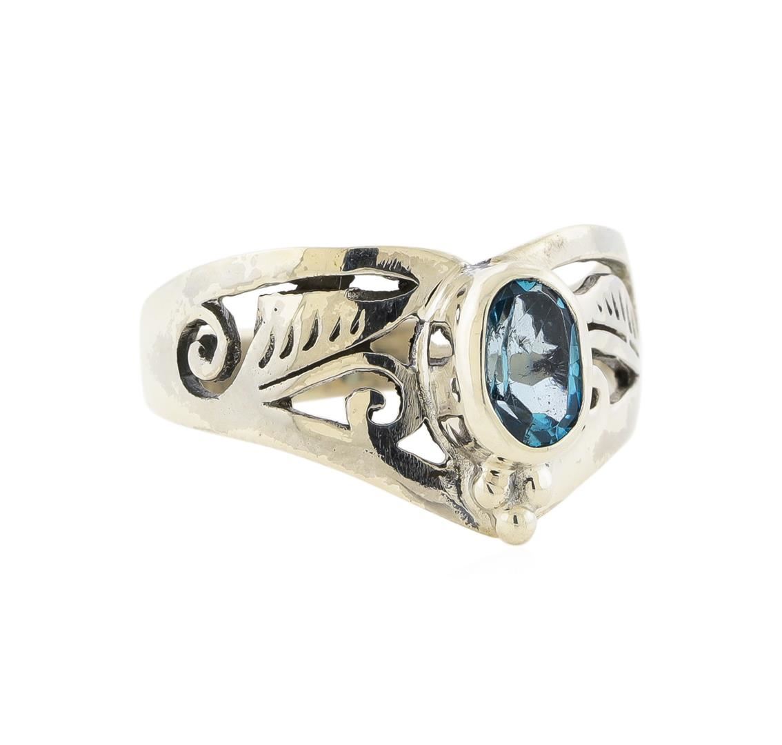 One of a kind high fashion sterling silver Ring weighing 2.6 grams. Containing: Blue Topaz. This sterling silver promises a lasting shine.