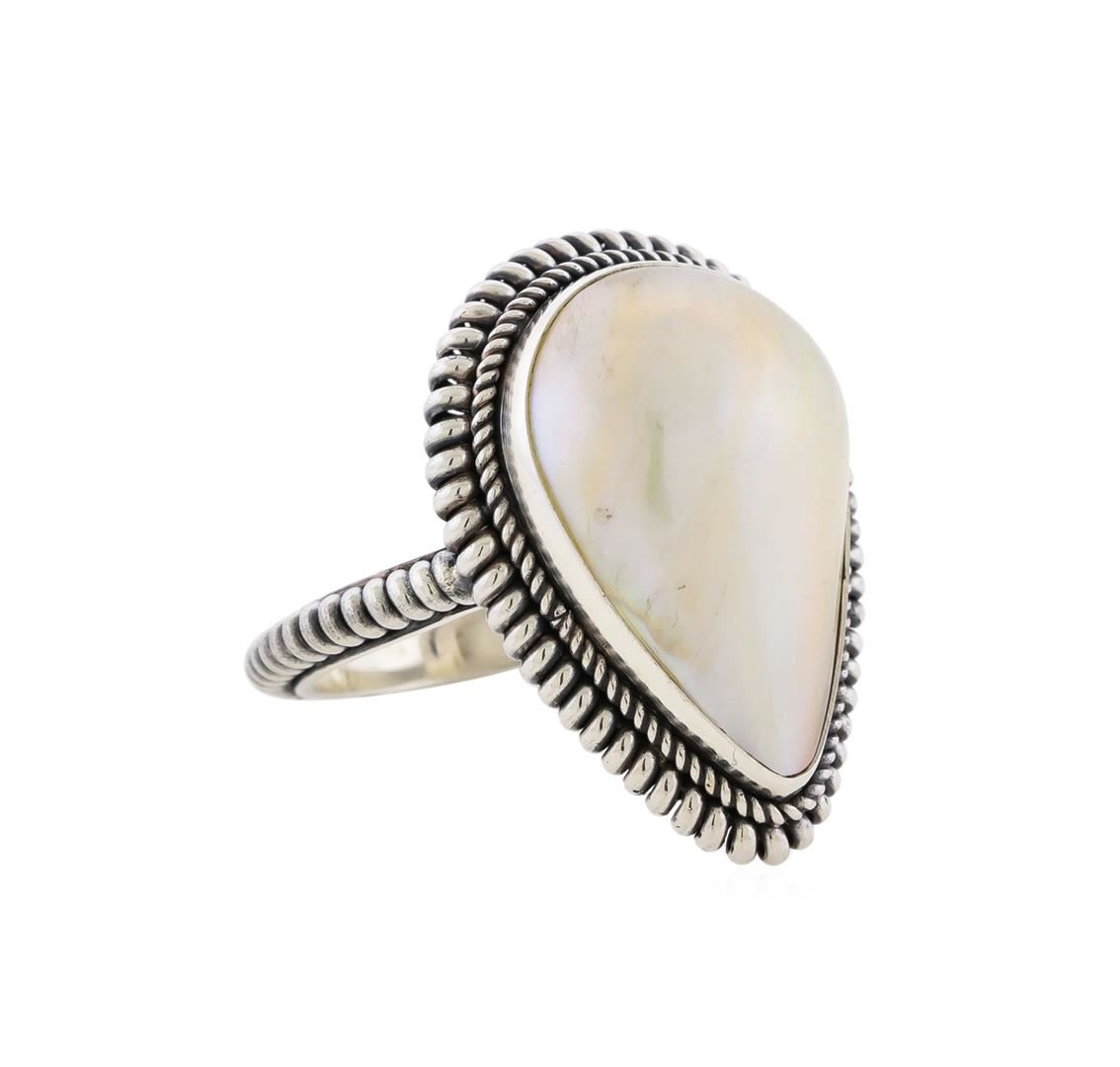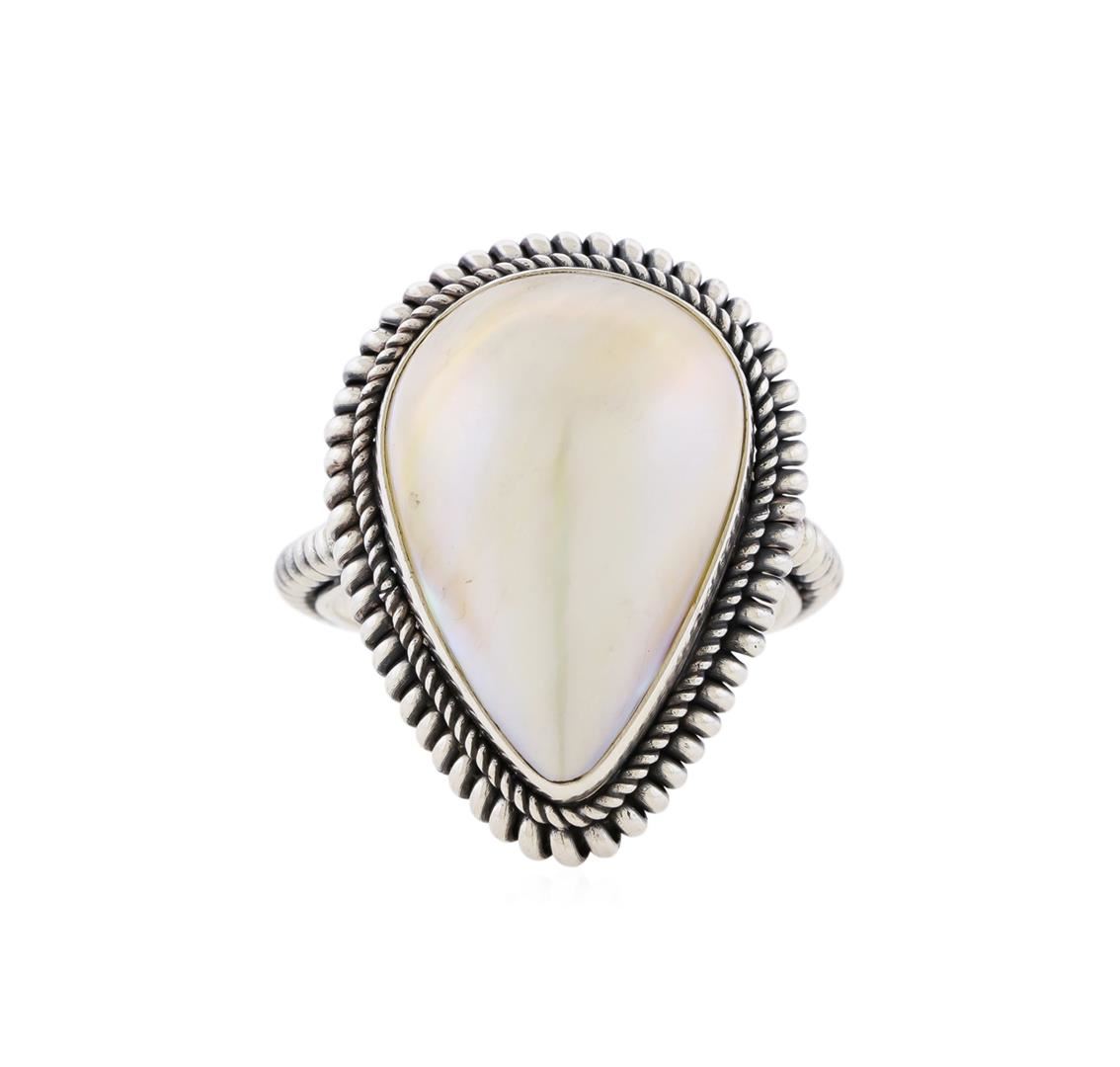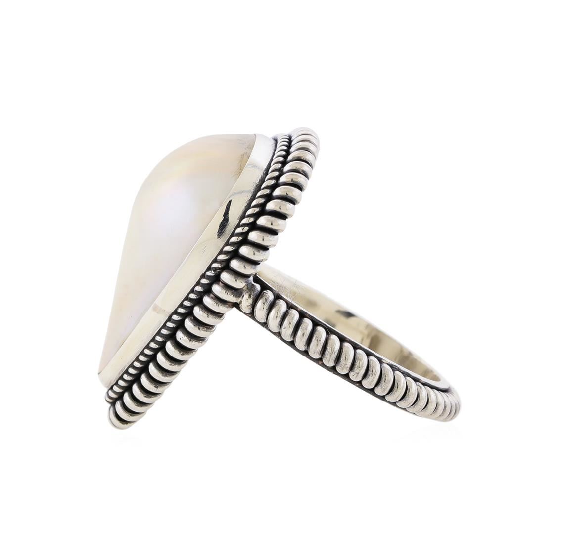 One of a kind high fashion sterling silver Ring weighing 5.5 grams. Containing: Mabe Pearl. This sterling silver promises a lasting shine.