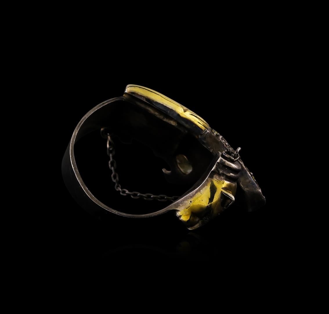 One of a kind high fashion sterling silver Ring weighing 15 grams. Containing: White Crystal, Black Crystal, Yellow Crystal. This sterling silver promises a lasting shine.