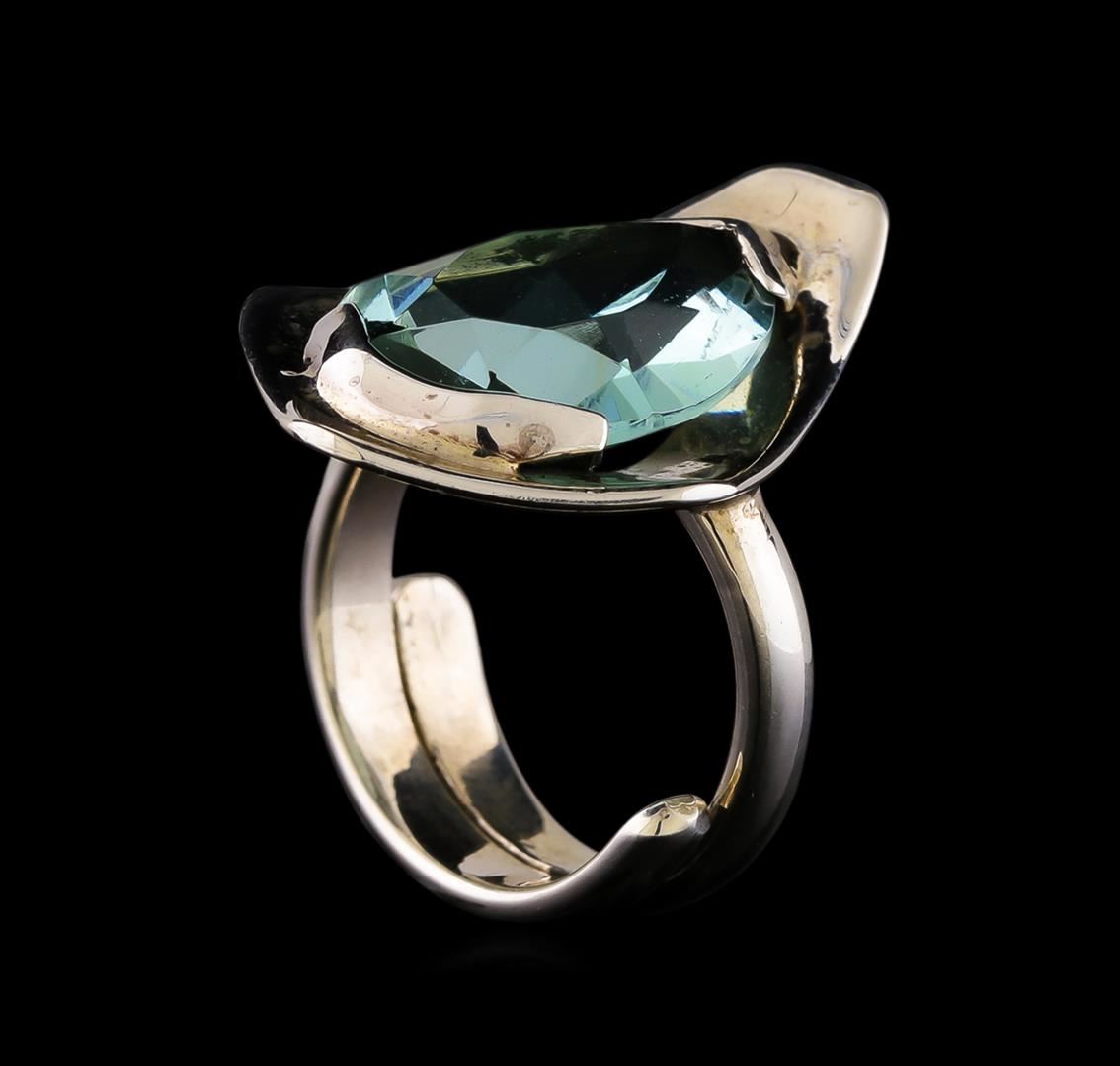One of a kind high fashion sterling silver Ring weighing 7.4 grams. Containing: Blue Crystal. This sterling silver promises a lasting shine.