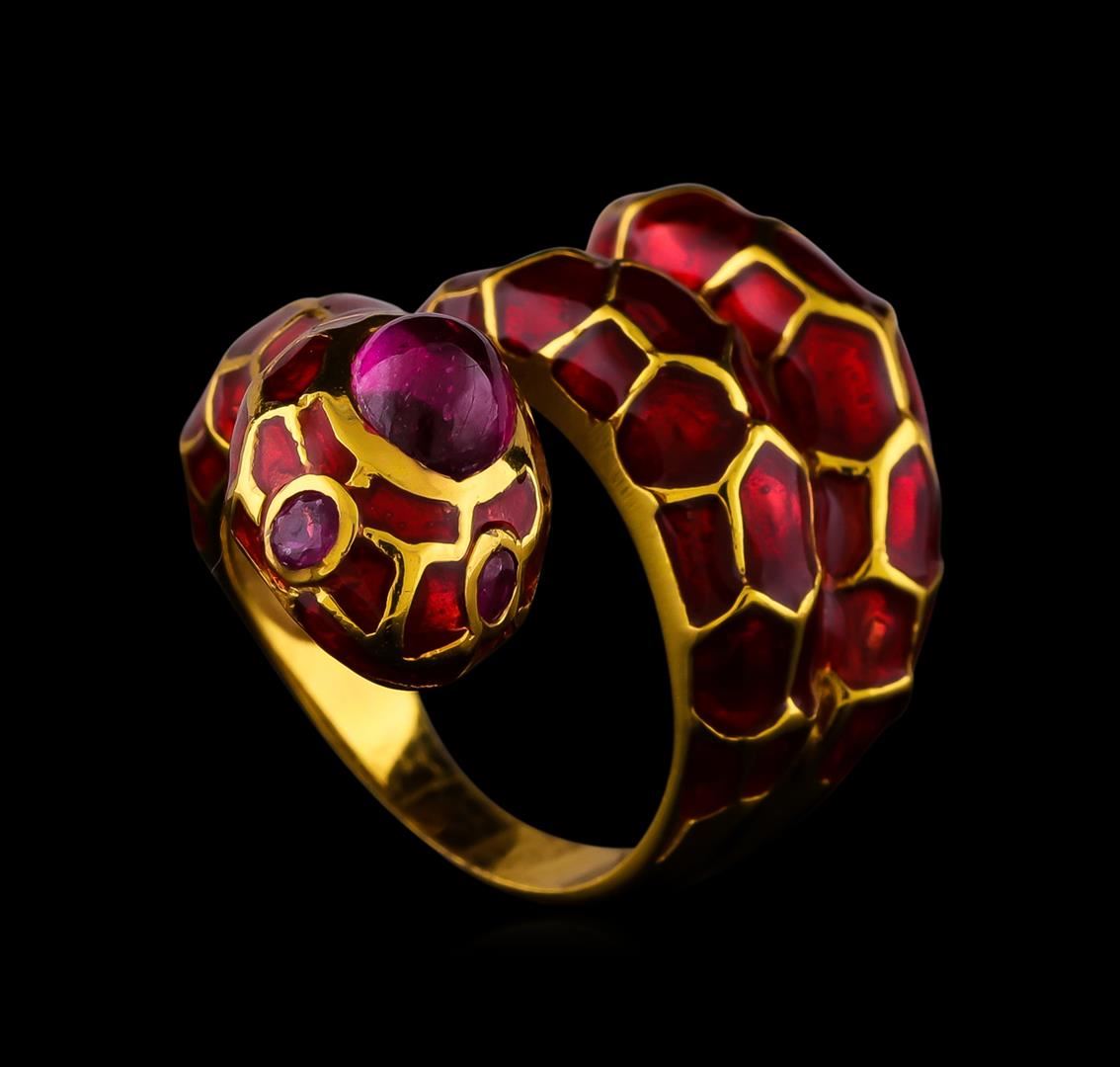 One of a kind high fashion sterling silver Ring weighing 12.7 grams. Containing: Ruby, Red Enamel Inlay. This sterling silver promises a lasting shine.