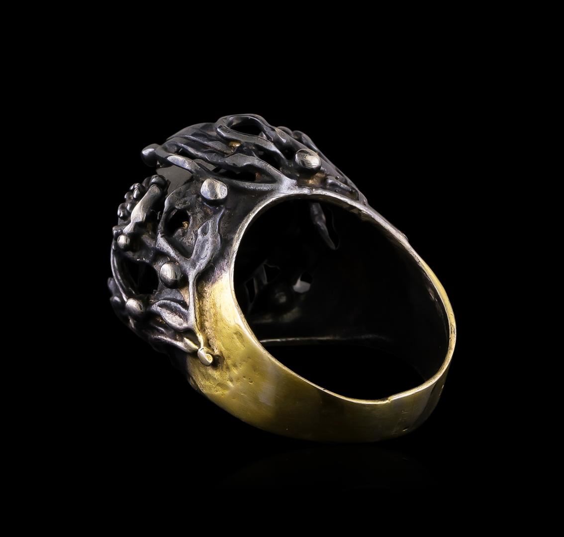 One of a kind high fashion sterling silver Ring weighing 17.5 grams. Black Antique texture. Containing: Black Crystal. This sterling silver promises a lasting shine.