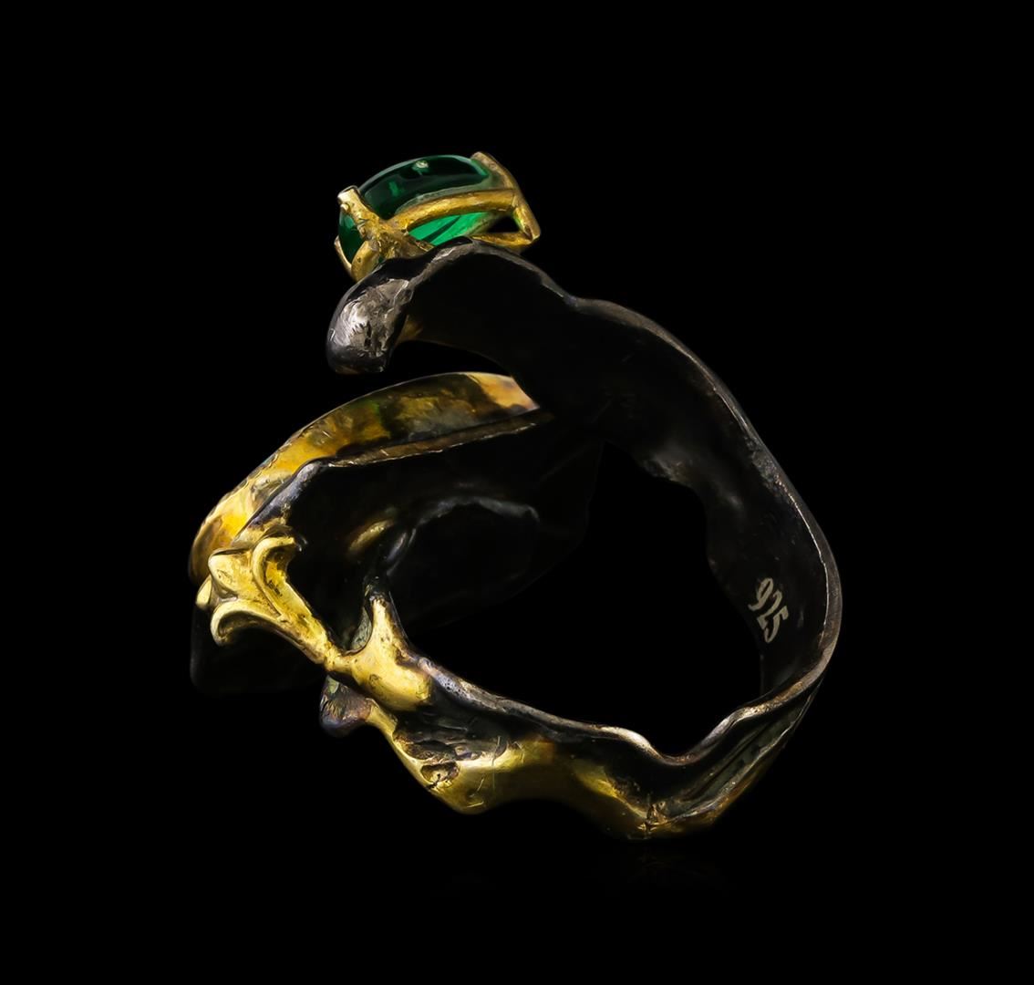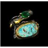 One of a kind high fashion sterling silver Ring weighing 12 grams. Containing: Turquoise, Green Crystal. This sterling silver promises a lasting shine.