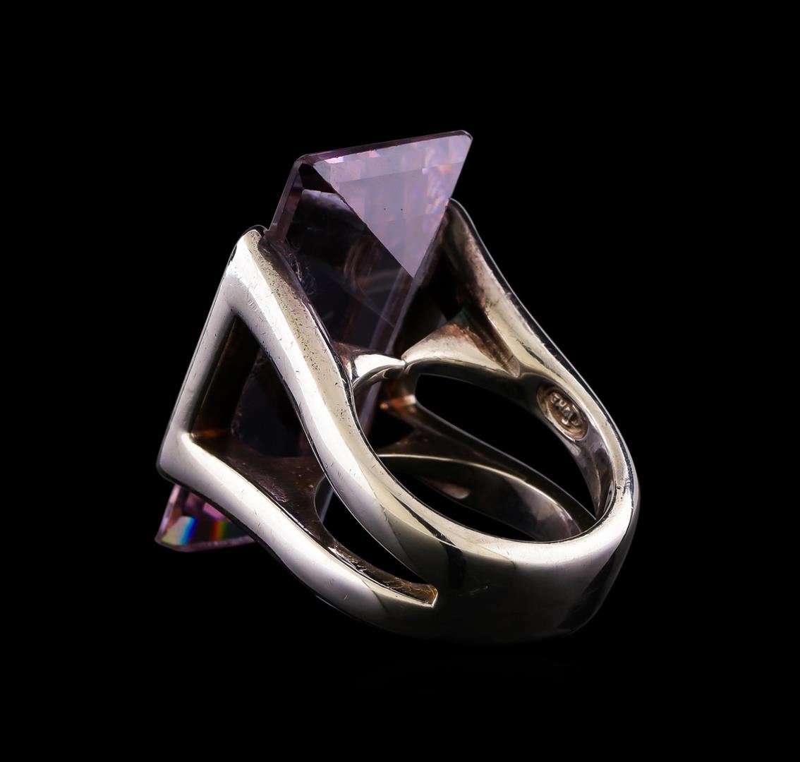 One of a kind high fashion sterling silver Ring weighing 21.8 grams. Containing: Purple Crystal. This sterling silver promises a lasting shine.