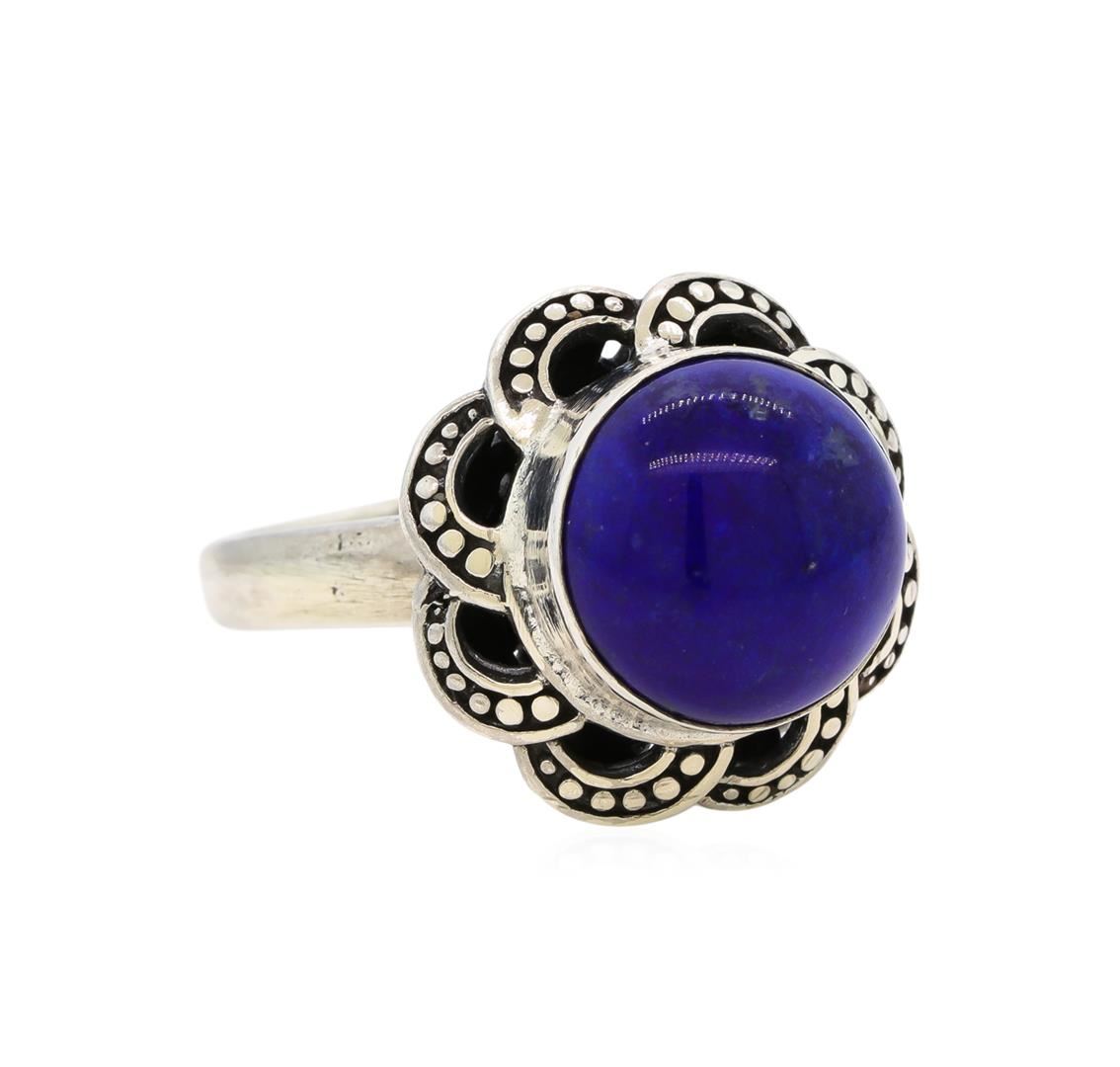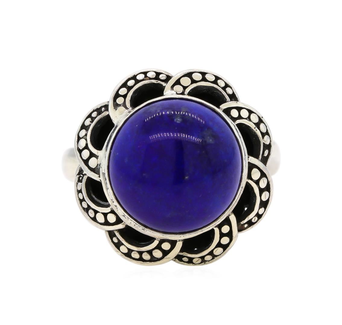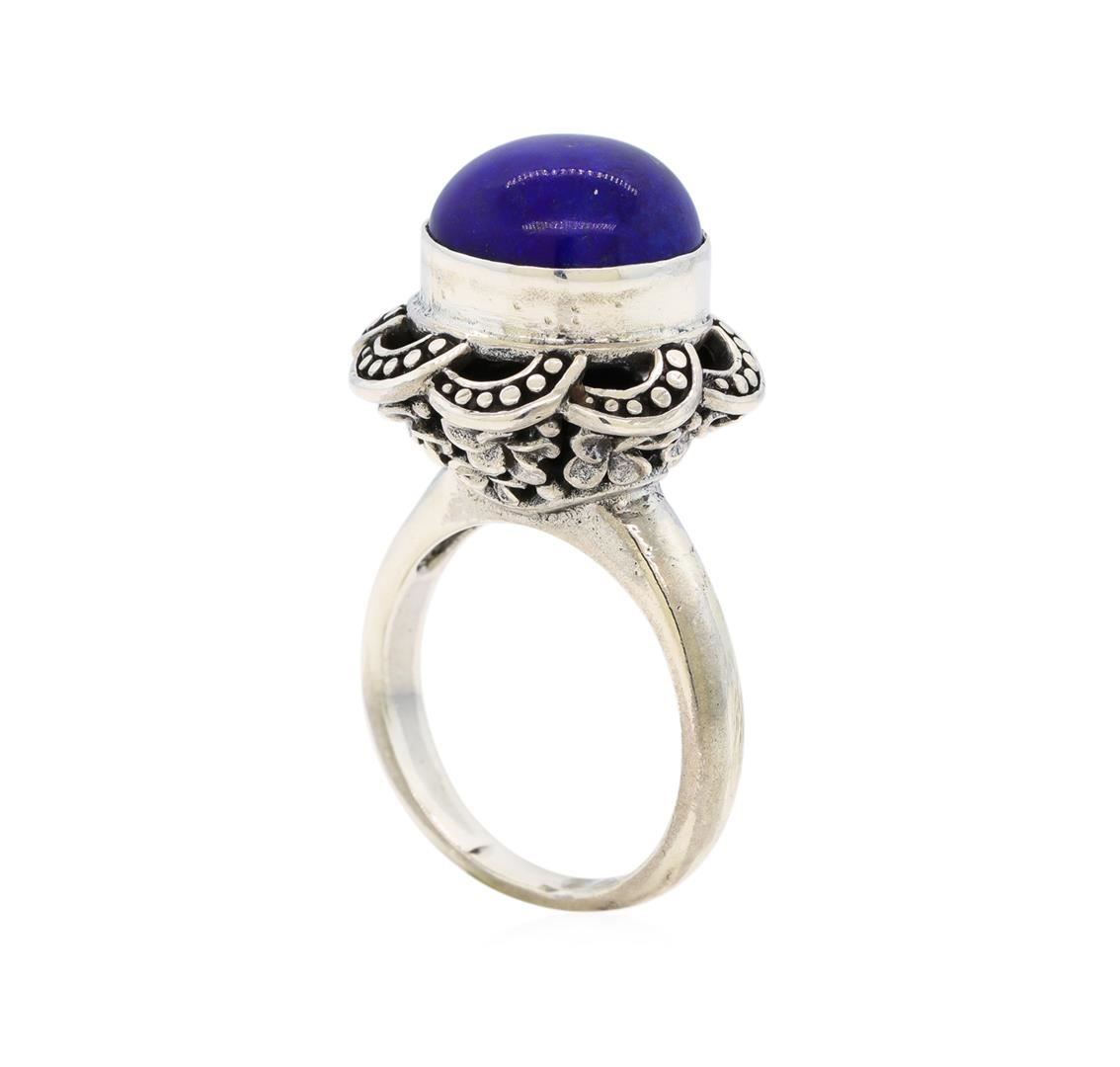 One of a kind high fashion sterling silver Ring weighing 8.3 grams. Containing: Lapis. This sterling silver promises a lasting shine.