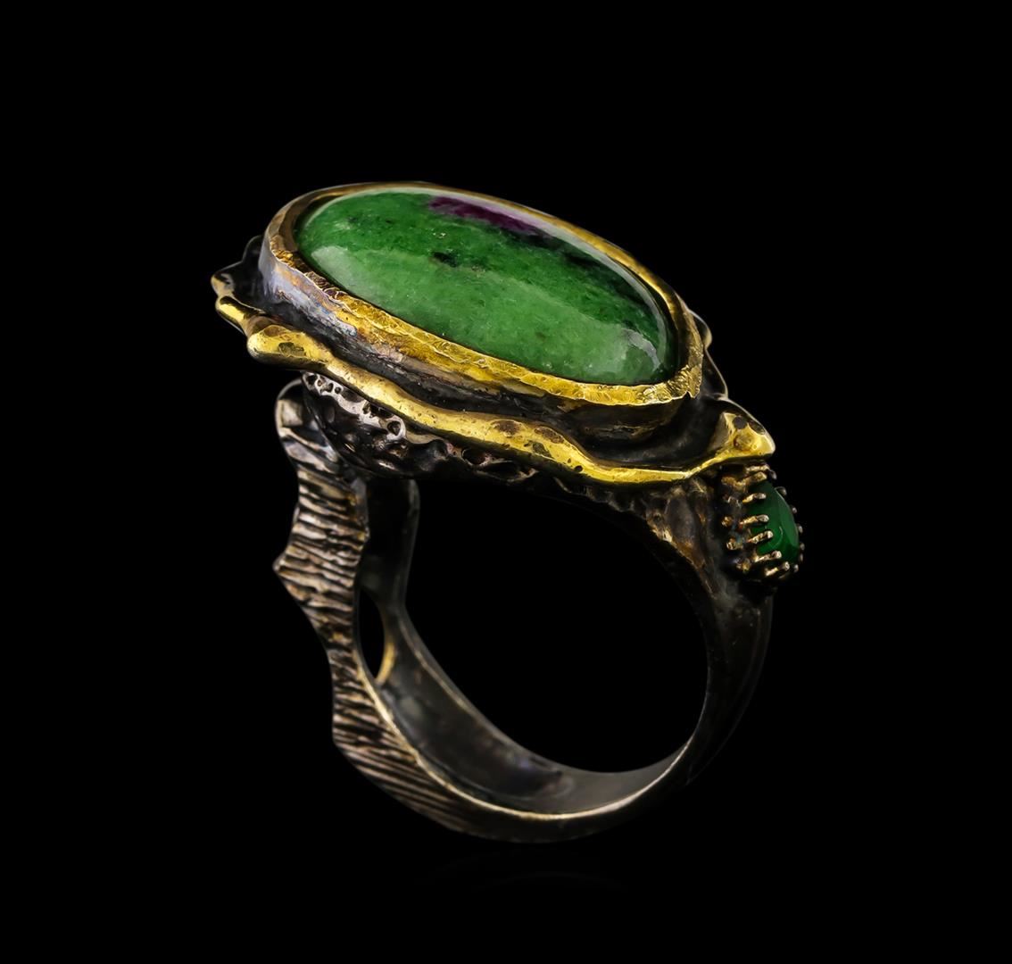 One of a kind high fashion sterling silver Ring weighing 22 grams. Black Antique texture. Containing: Created Green Agate, Green Crystal, White Crystal. This sterling silver promises a lasting shine.