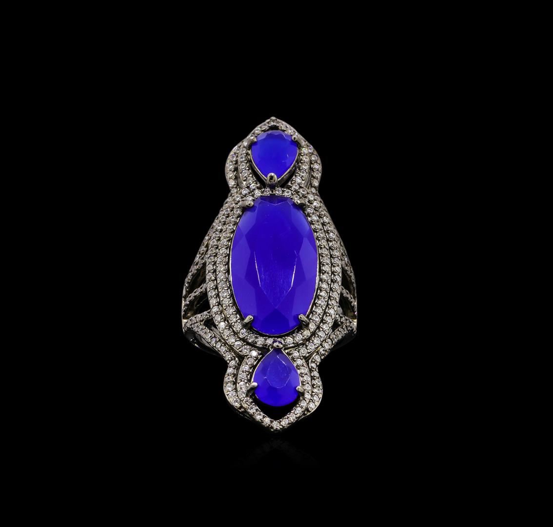 One of a kind high fashion sterling silver Ring weighing 8.7 grams. Containing: Blue Crystal, Cubic Zirconia. This sterling silver promises a lasting shine.
