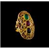 One of a kind high fashion sterling silver Ring weighing 9.2 grams. Containing: Ruby, Emerald, Sapphire, Red Enamel Inlay, White Enamel Inlay. This sterling silver promises a lasting shine.