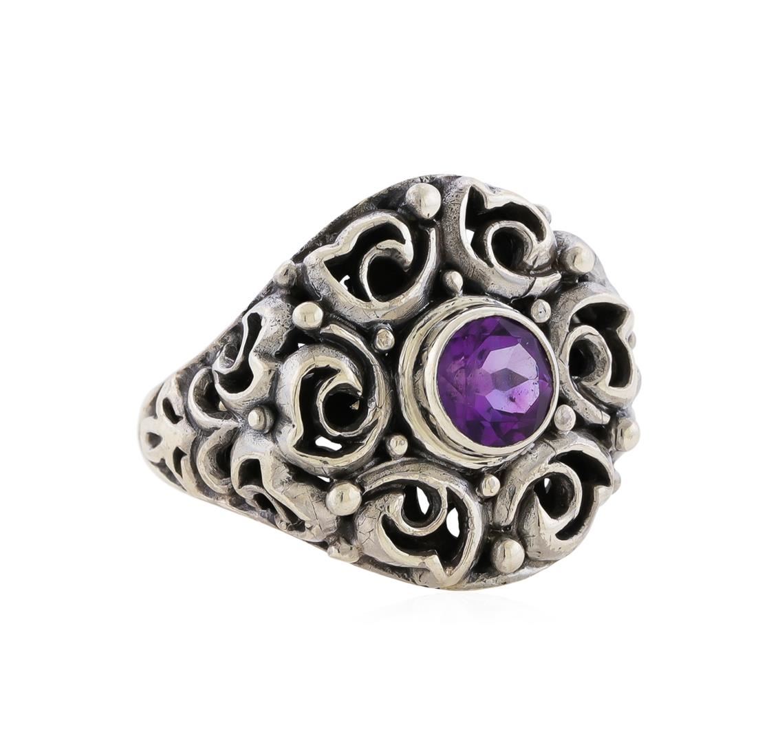 One of a kind high fashion sterling silver Ring weighing 7.5 grams. Containing: Amethyst. This sterling silver promises a lasting shine.