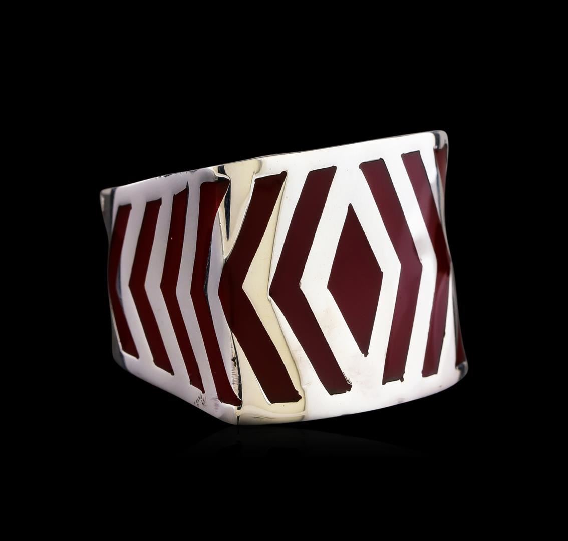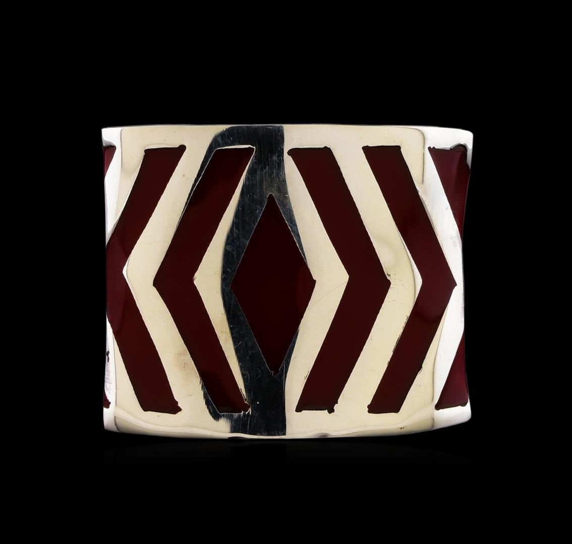 One of a kind high fashion sterling silver Ring weighing 16.6 grams. Containing: Red Enamel Inlay. This sterling silver promises a lasting shine.