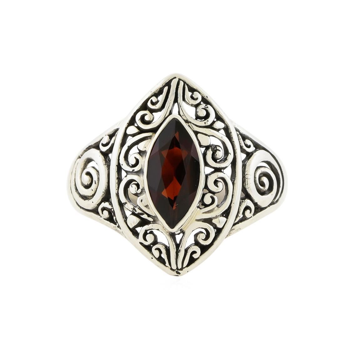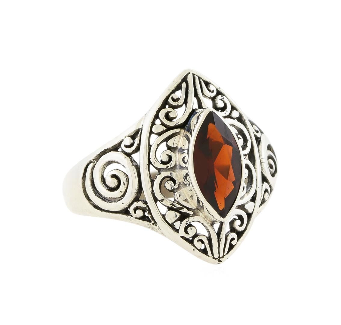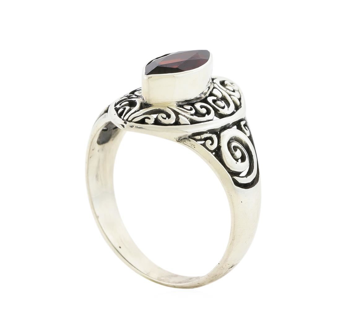 One of a kind high fashion sterling silver Ring weighing 3.8 grams. Containing: Garnet. This sterling silver promises a lasting shine.
