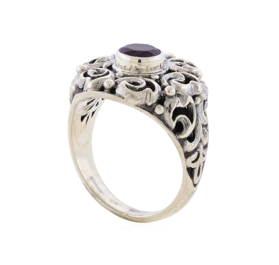 One of a kind high fashion sterling silver Ring weighing 7.5 grams. Containing: Amethyst. This sterling silver promises a lasting shine.